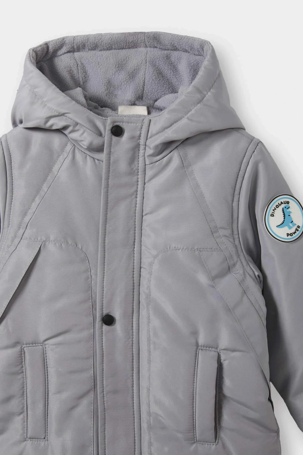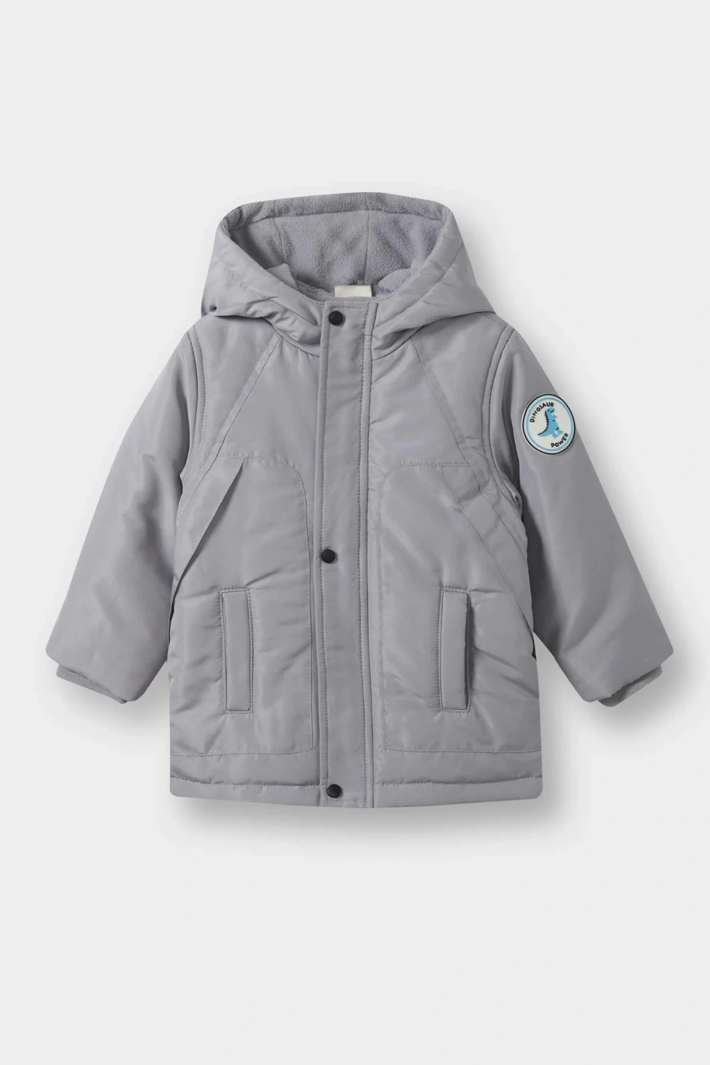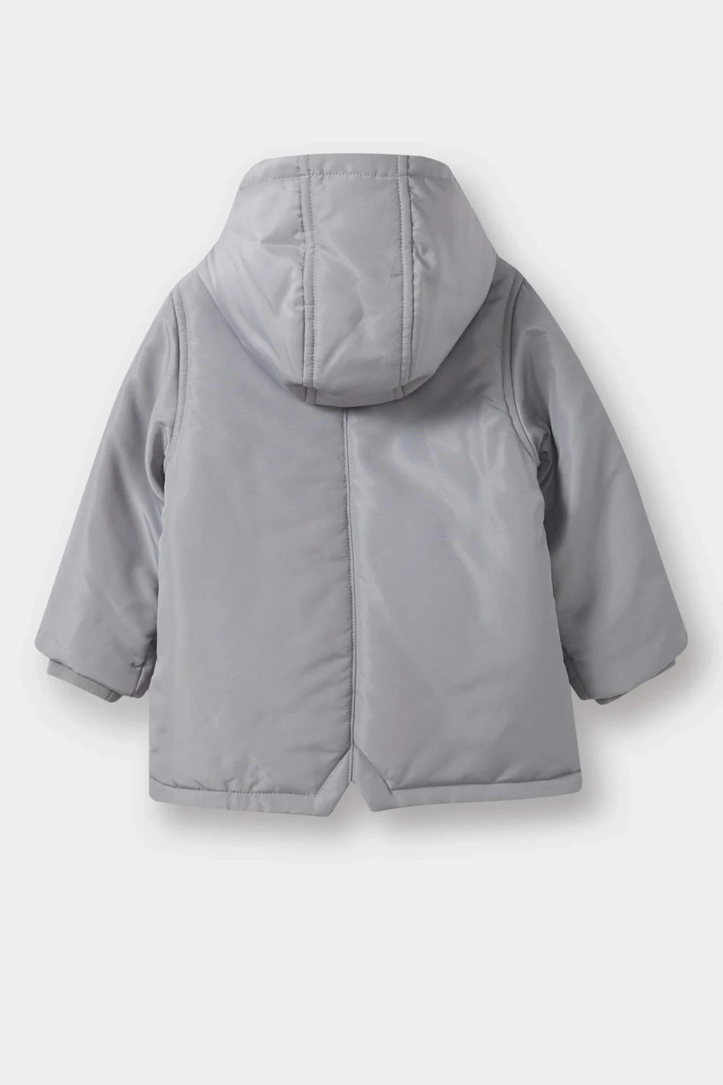 Su geçirmez kumaşı ve kapüşonlu tasarımıyla bu erkek bebek mont, kötü hava koşullarına karşı tam koruma sağlar. Fermuarlı ve çıtçıtlı detayları sayesinde kolay giyilip çıkarılır, konforlu ve pratiktir.