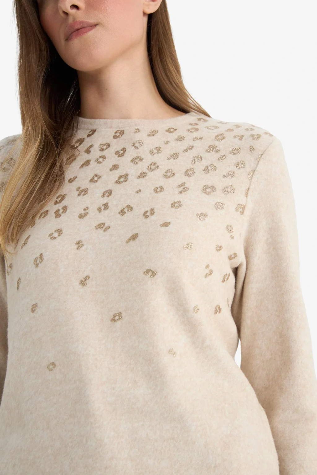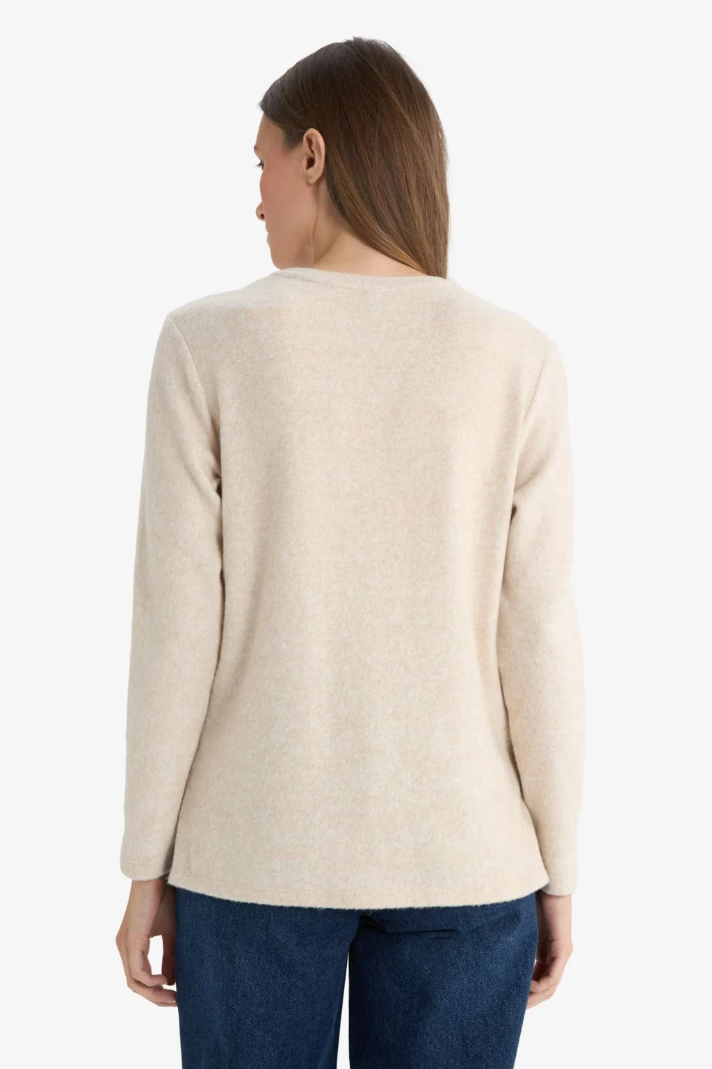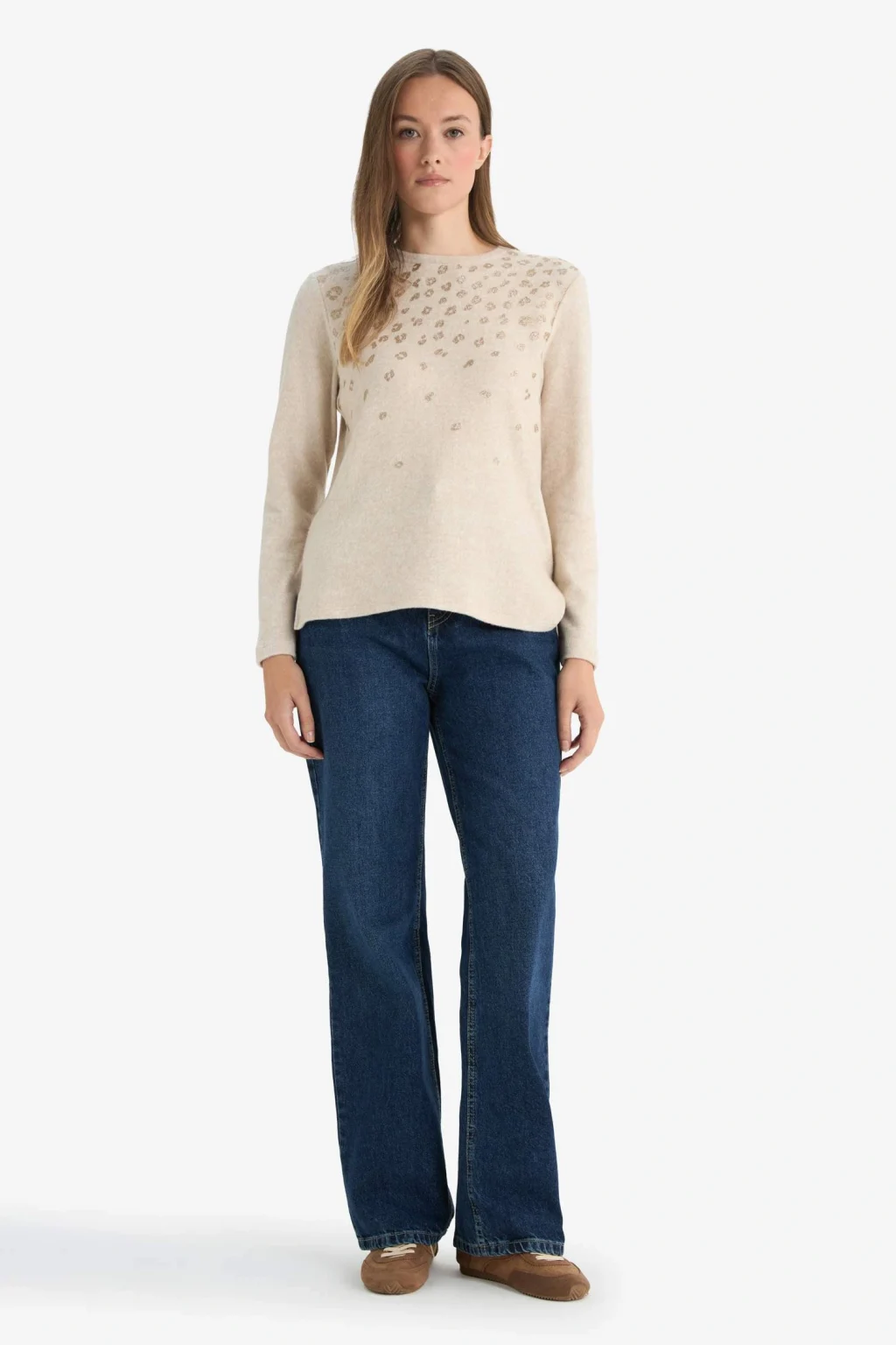 Regular fit kesimi ve şık taş detaylarıyla öne çıkan bu uzun kollu tişört, bisiklet yaka tasarımıyla günlük stilinize zarif bir dokunuş katar. Rahat kumaşıyla konforlu bir kullanım sunar.