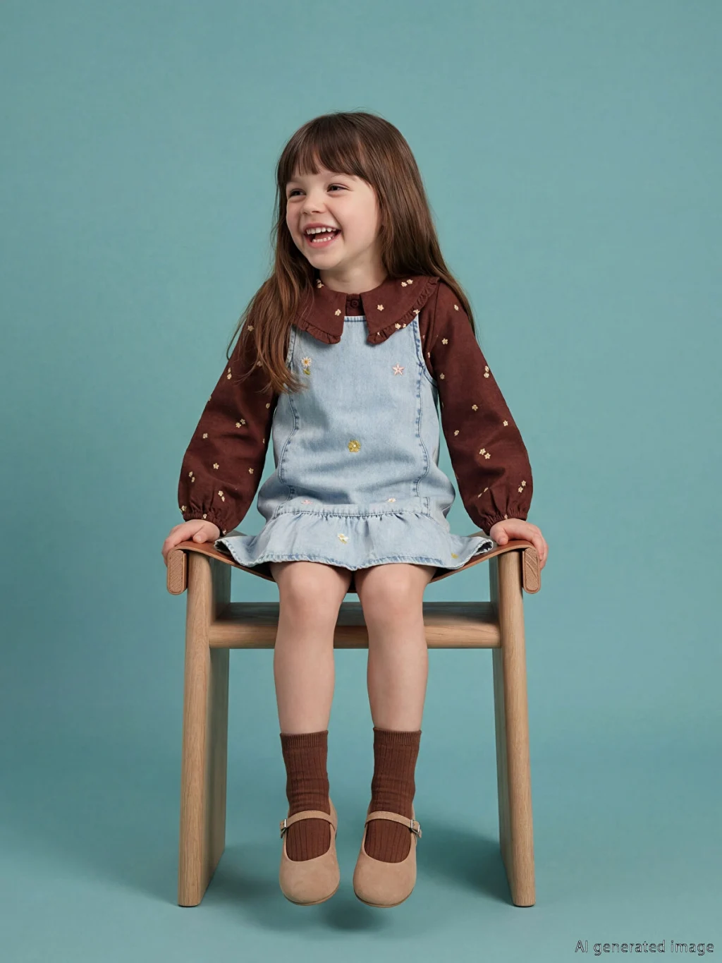 LCW Kids MAVİ Kare Yaka Nakışlı Kız Çocuk Jean Salopet Elbise