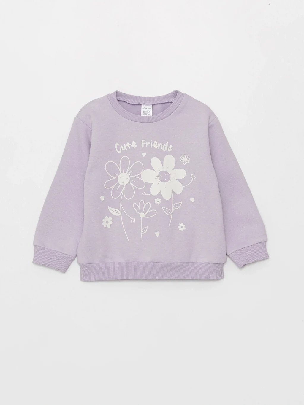 Bisiklet yakalı, uzun kollu kız bebek sweatshirt ve beli lastikli pantolon takımı. Sevimli çiçek baskısıyla dikkat çeker. Pamuklu esnek sweatshirt kumaştan üretilmiştir, rahat ve konforlu bir seçenektir.