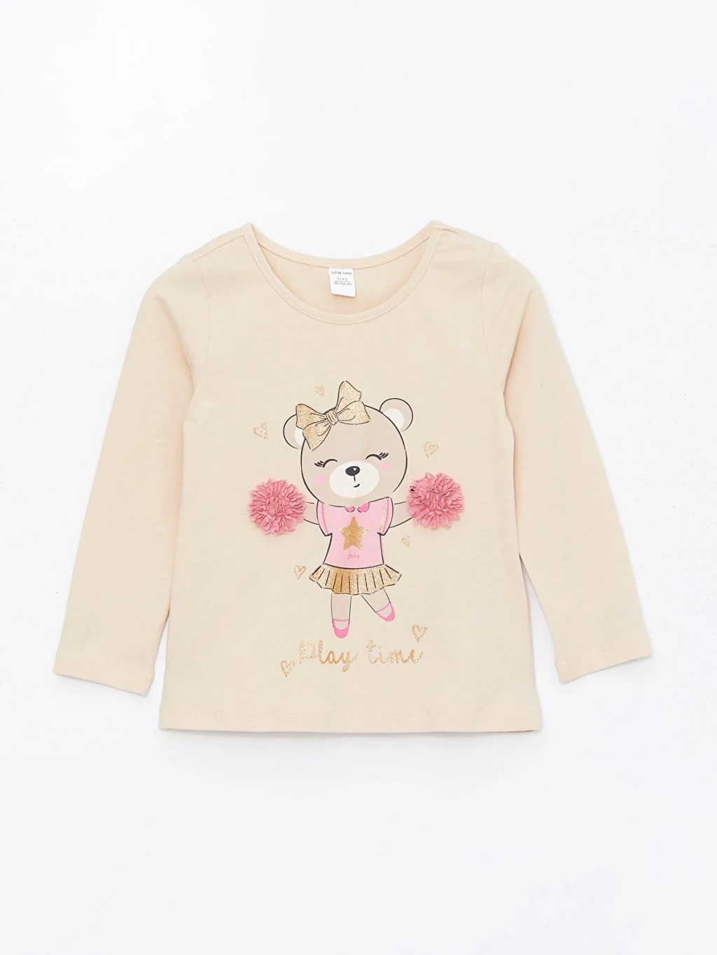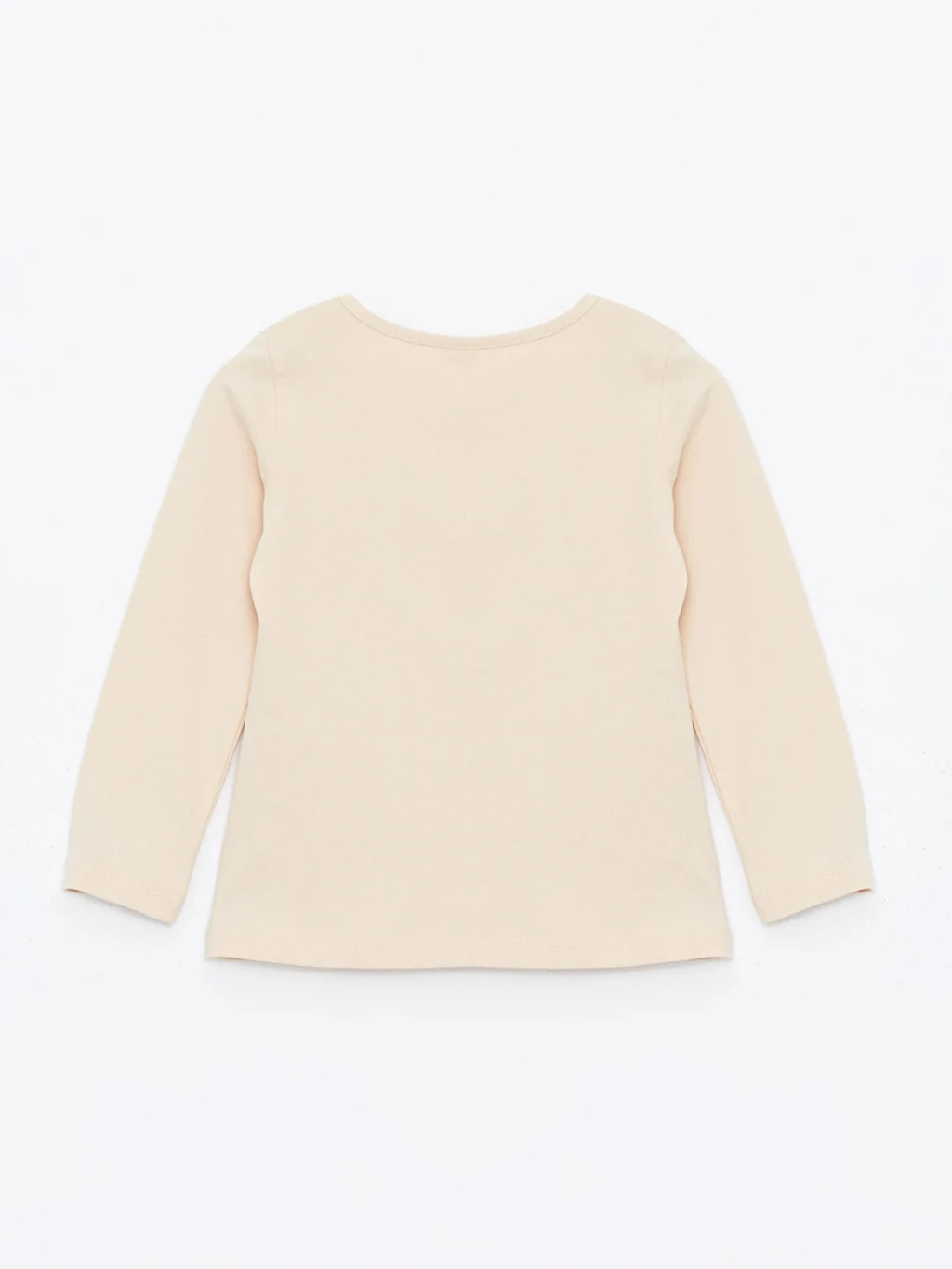 Bisiklet yaka baskılı uzun kollu kız bebek tişört. Bebeğinizin rahatlığını ve tarzını ön plana çıkarır. Hem günlük giyimde hem de özel anlarda mükemmel bir seçenektir.