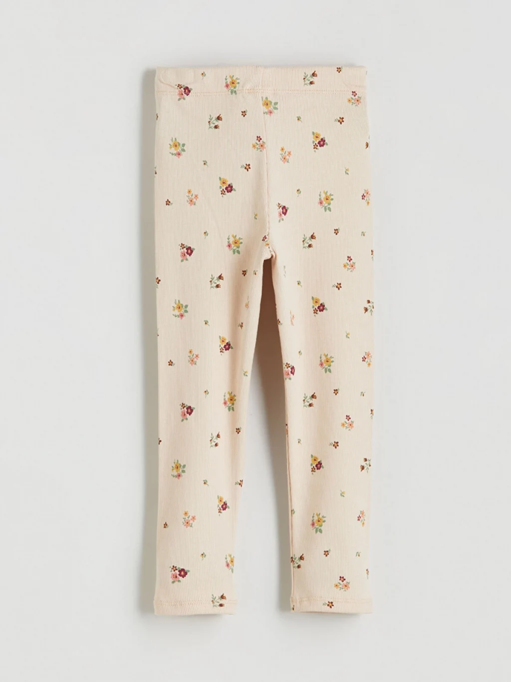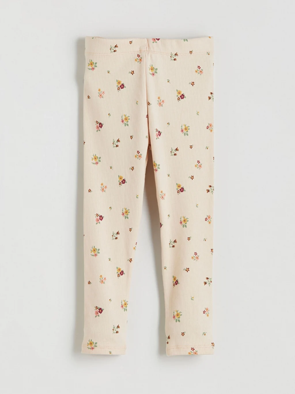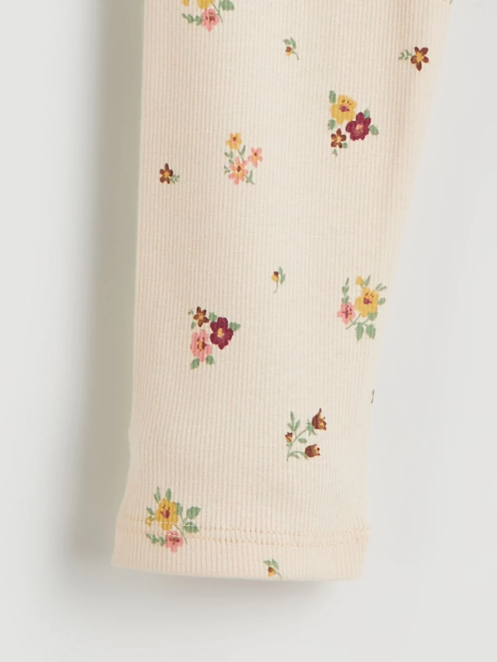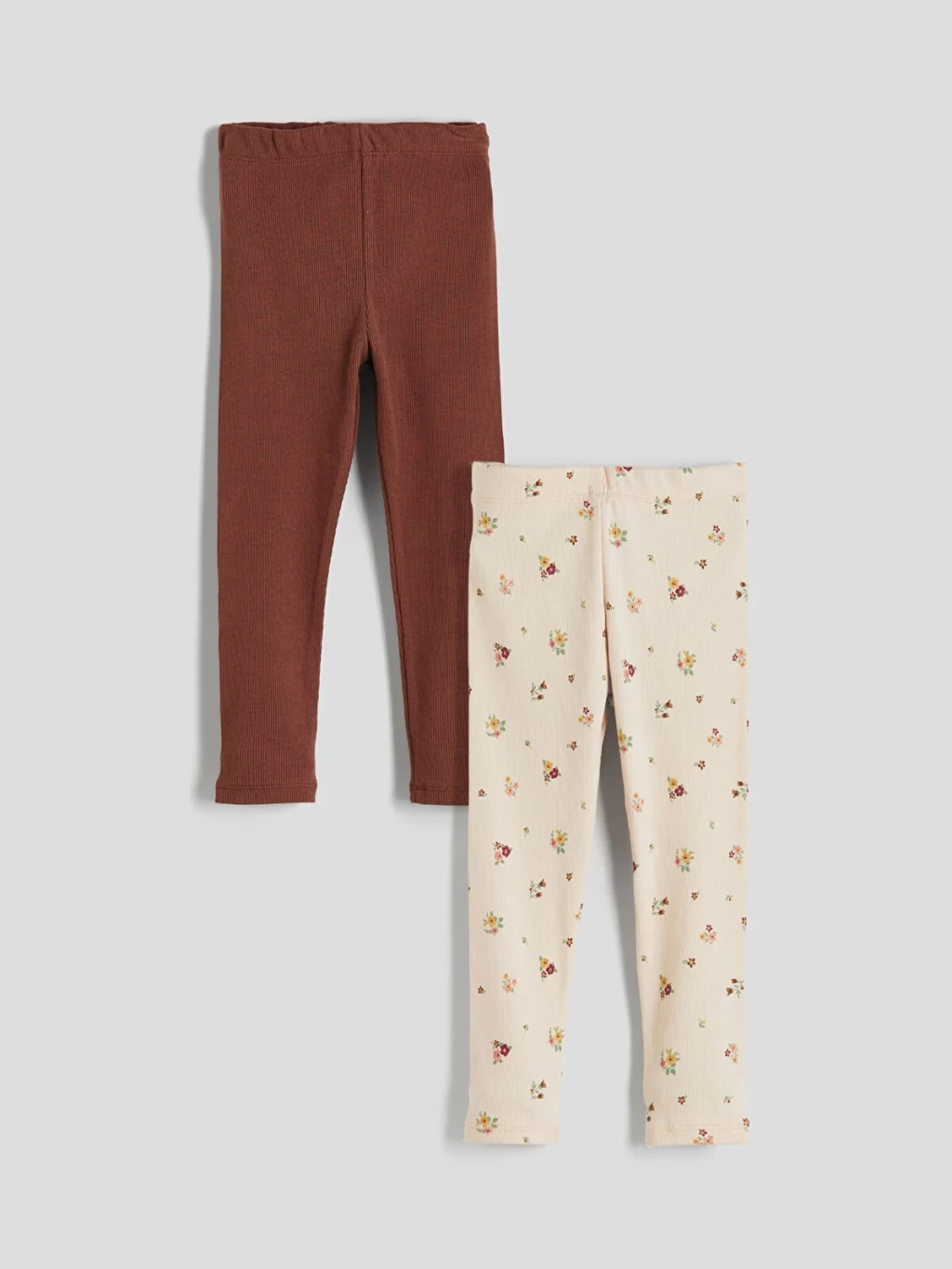 Biri düz, diğeri çiçek desenli iki adet kız çocuk tayttan oluşan set, beli lastikli kaşkorse kumaştan üretilmiştir.