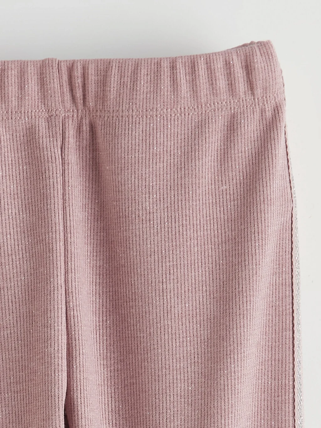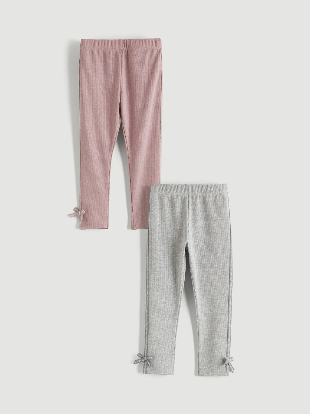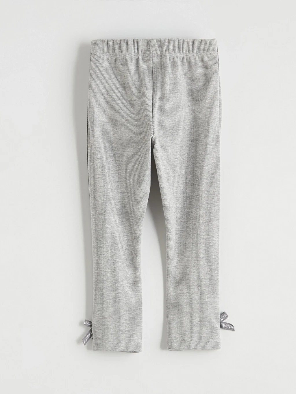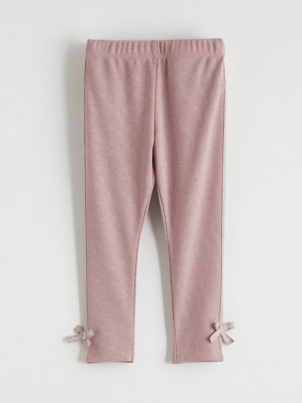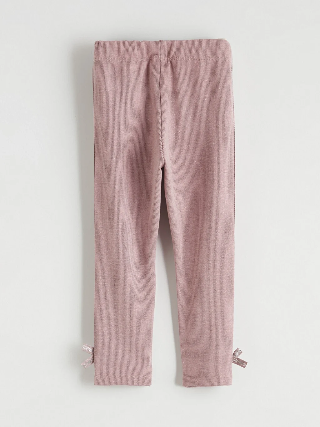 Yüksek pamuk içerikli kaşkorse kumaştan üretilen, beli lastikli ve uzun paçalı kız çocuk tayt, fiyonk detaylı bir tasarıma sahiptir.