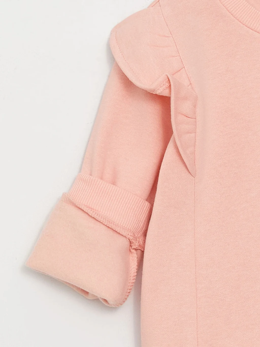 Bisiklet yaka uzun kollu baskılı kız bebek sweatshirt 2'li, 3 iplik şardonlu kumaşı, fırfır ve baskı modelleriyle dikkat çeker. Bebeğinizin rahatlığını ve tarzını ön plana çıkarır. Bebeğinizin favorisi olur.
