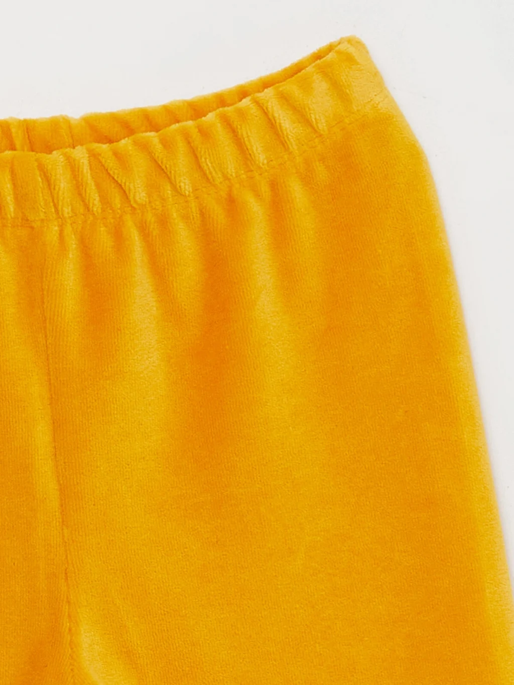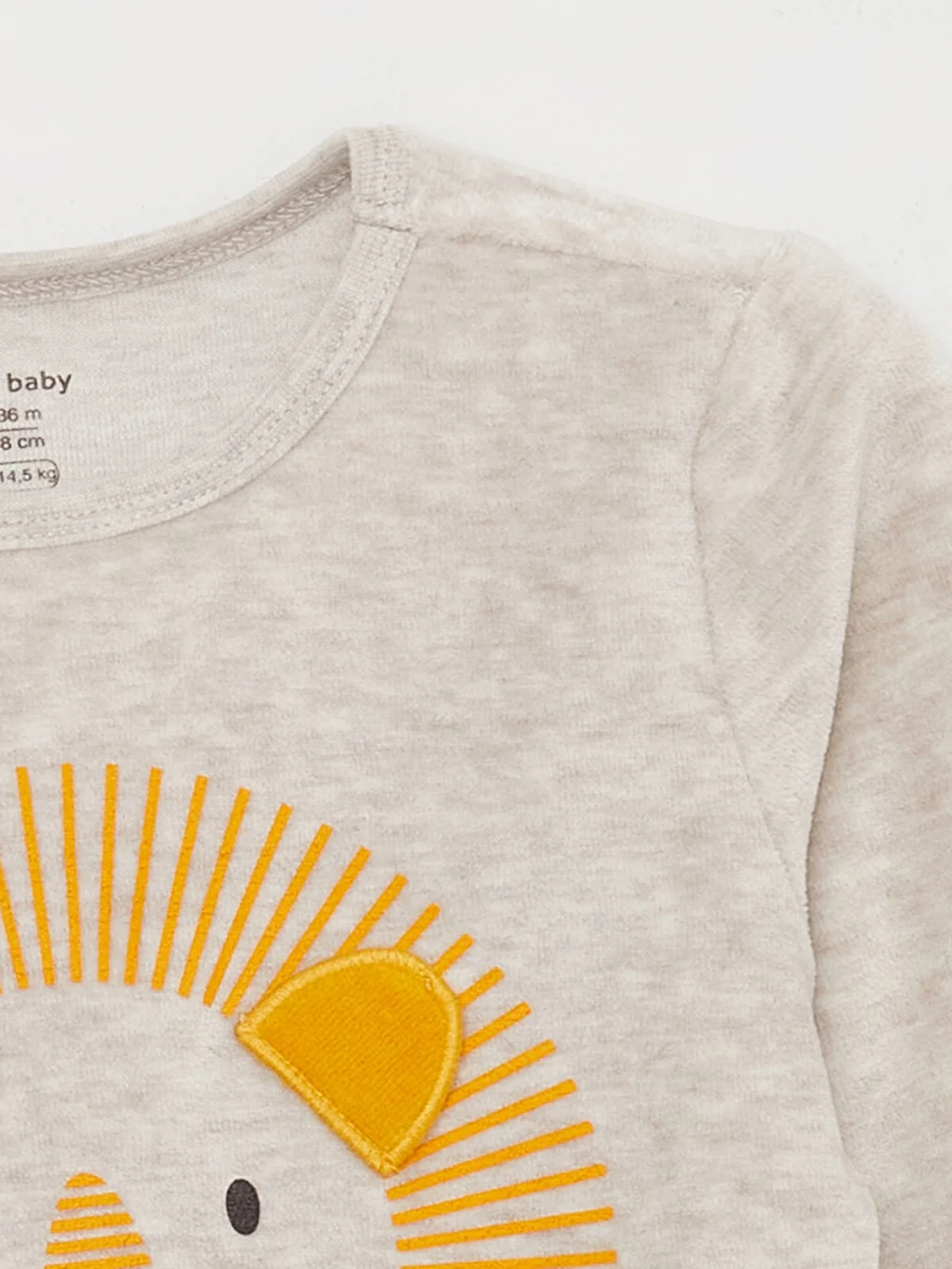 Erkek bebek pijama takımı, kadife kumaşıyla yumuşaklık ve sıcaklık sunar. Beli lastikli tasarımıyla rahat bir giyim sağlarken şıklığı da ön planda tutar. 3D aplike detaylı