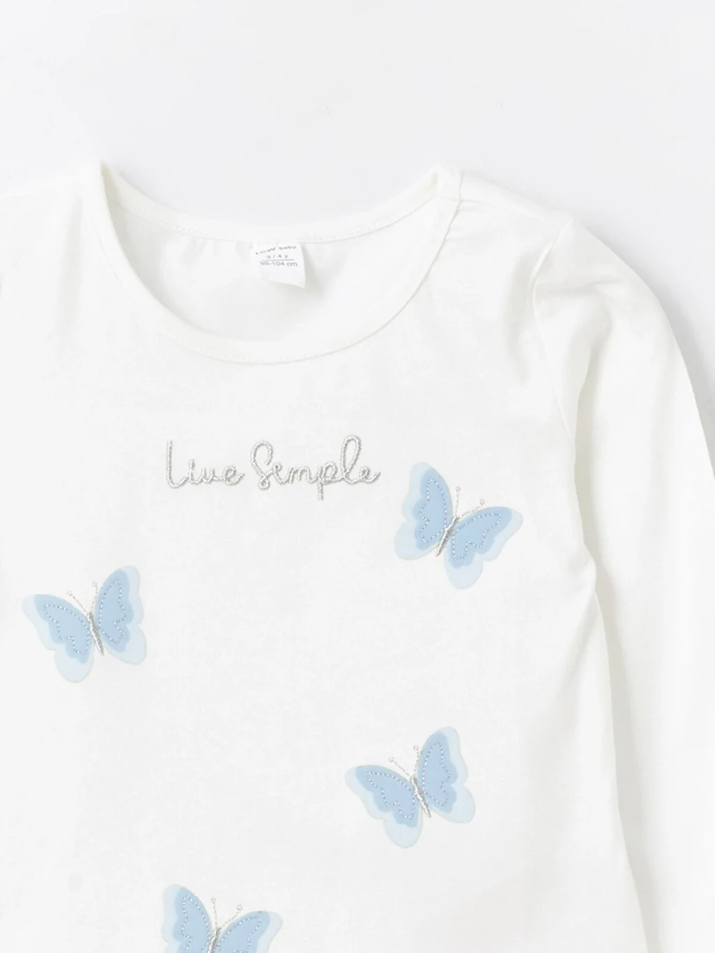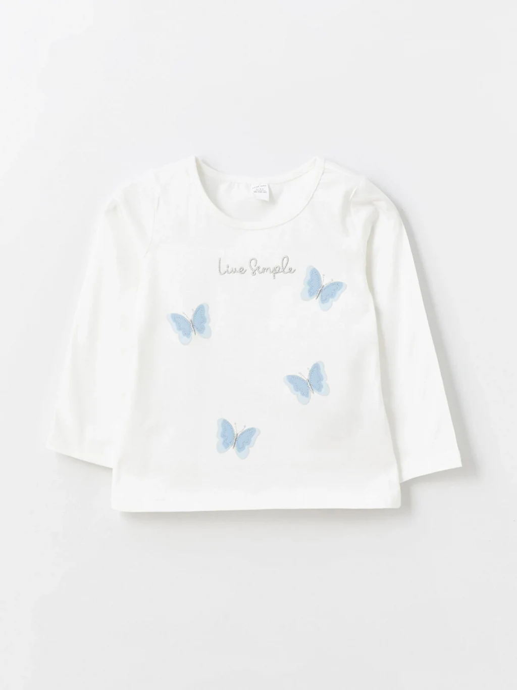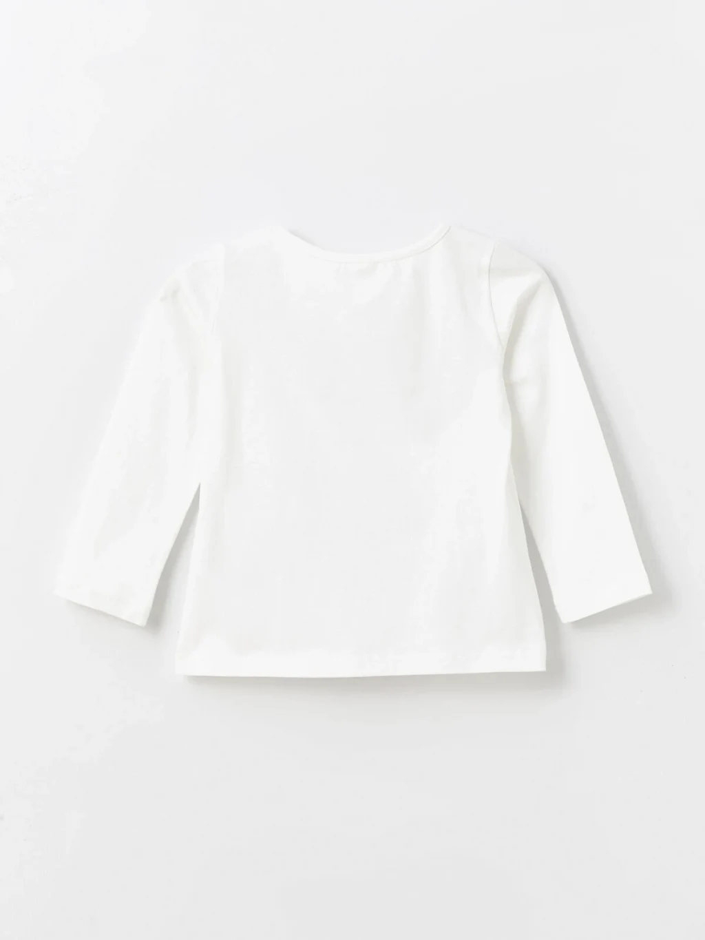 Bisiklet yaka baskılı uzun kollu kız bebek tişört. Bebeğinizin rahatlığını ve tarzını ön plana çıkarır. Hem günlük giyimde hem de özel anlarda mükemmel bir seçenektir.