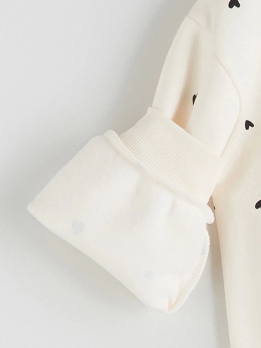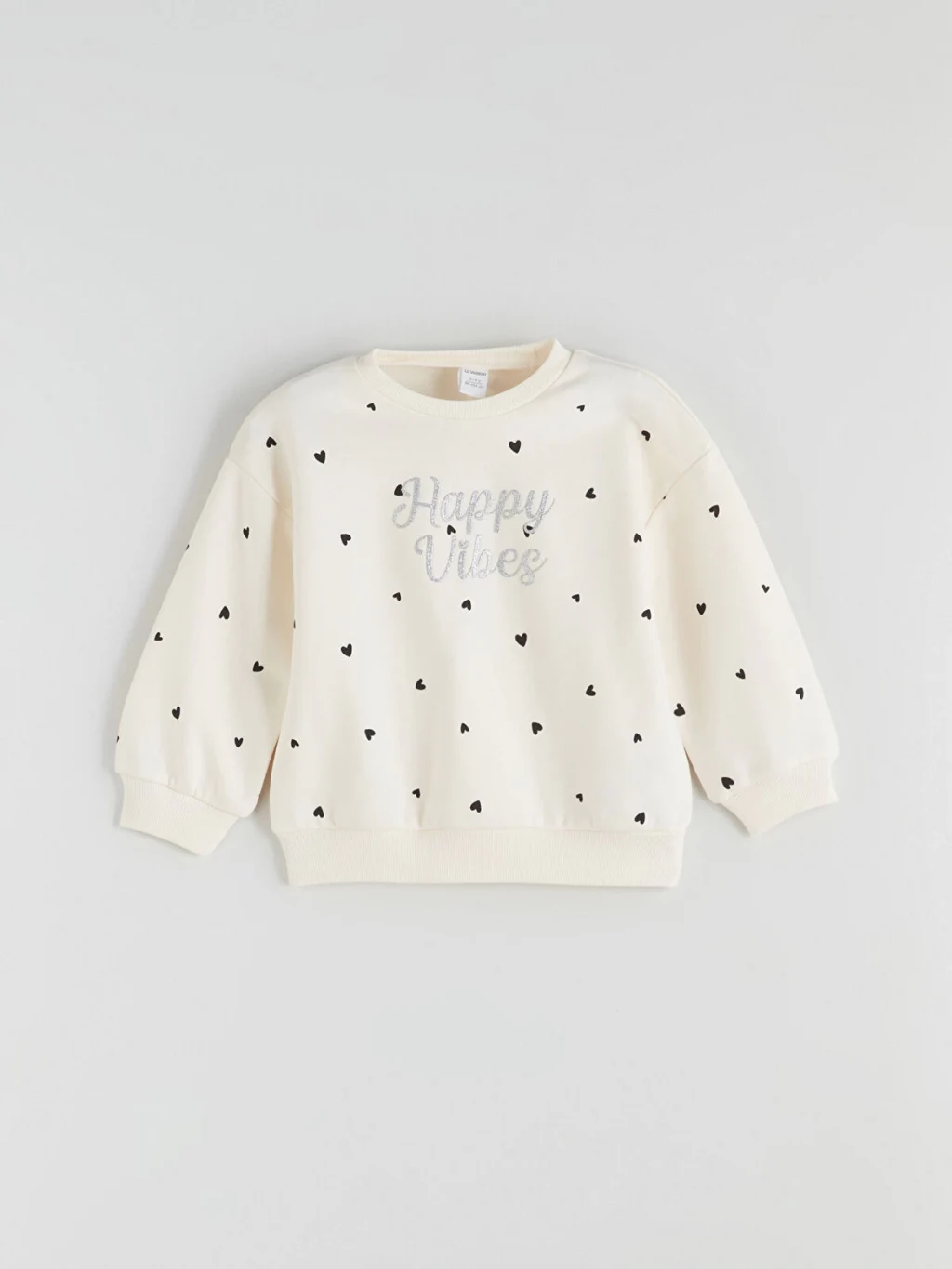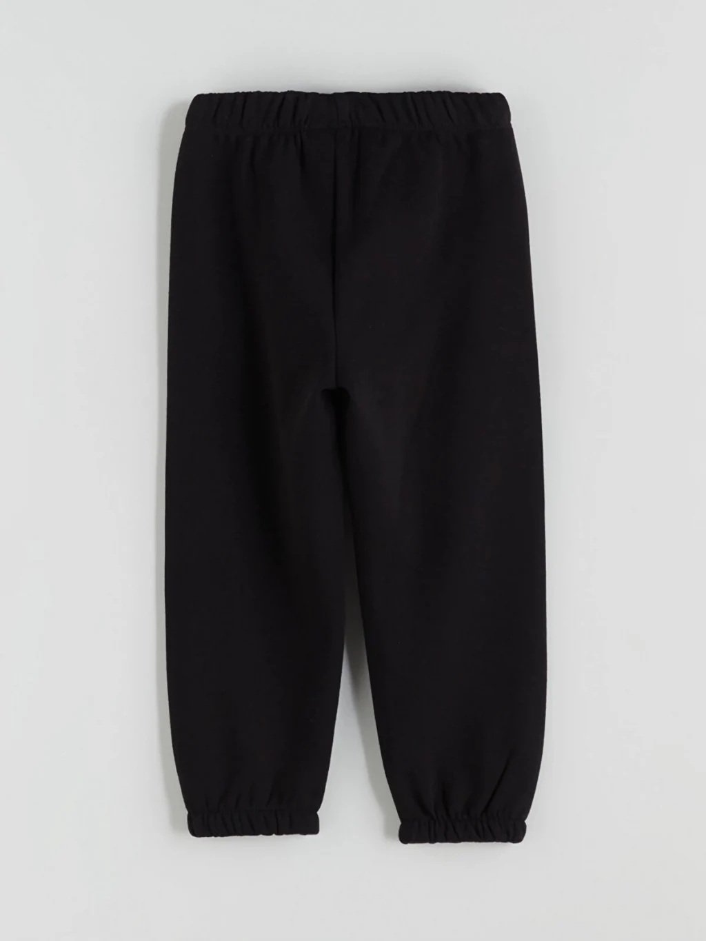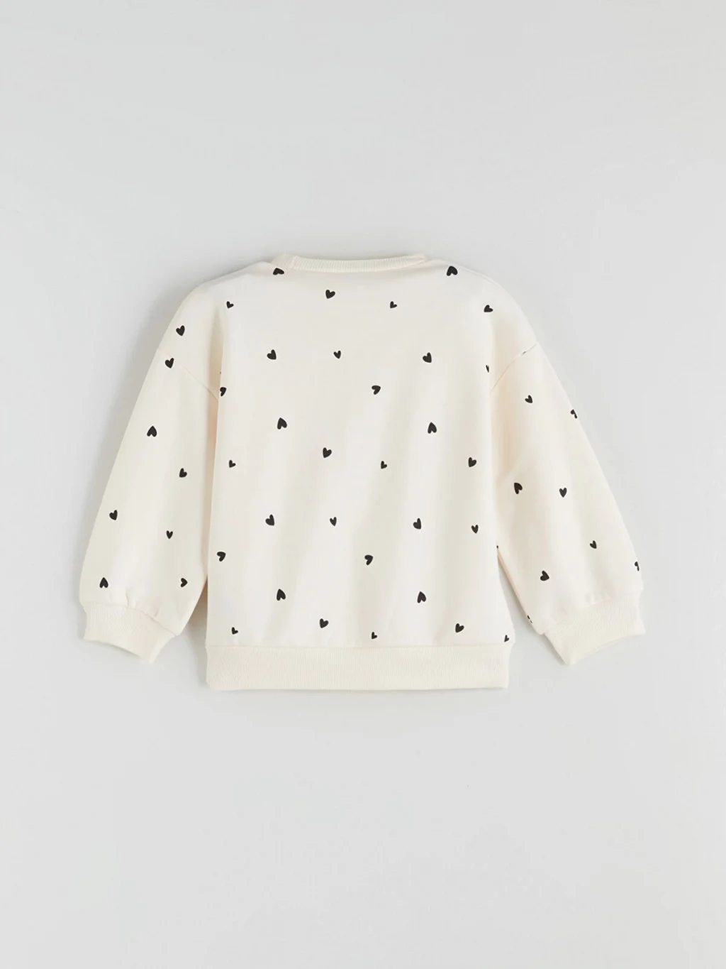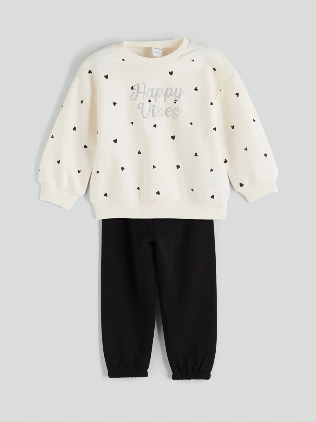 3 iplik şardonlu kumaştan üretilmiş kız çocuk sweatshirt ve eşofman alt takımı, bisiklet yaka ve lastikli bel tasarımına sahiptir.