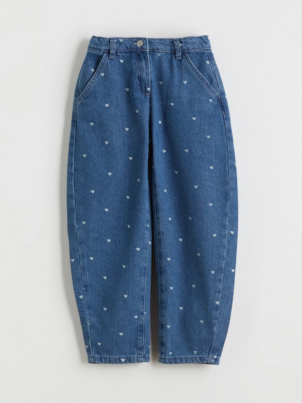 Balloon fit kız çocuk denim pantolon, belden paçaya doğru rahat inen bir kesime sahiptir. Beli içten ayarlanabilir lastiklidir.