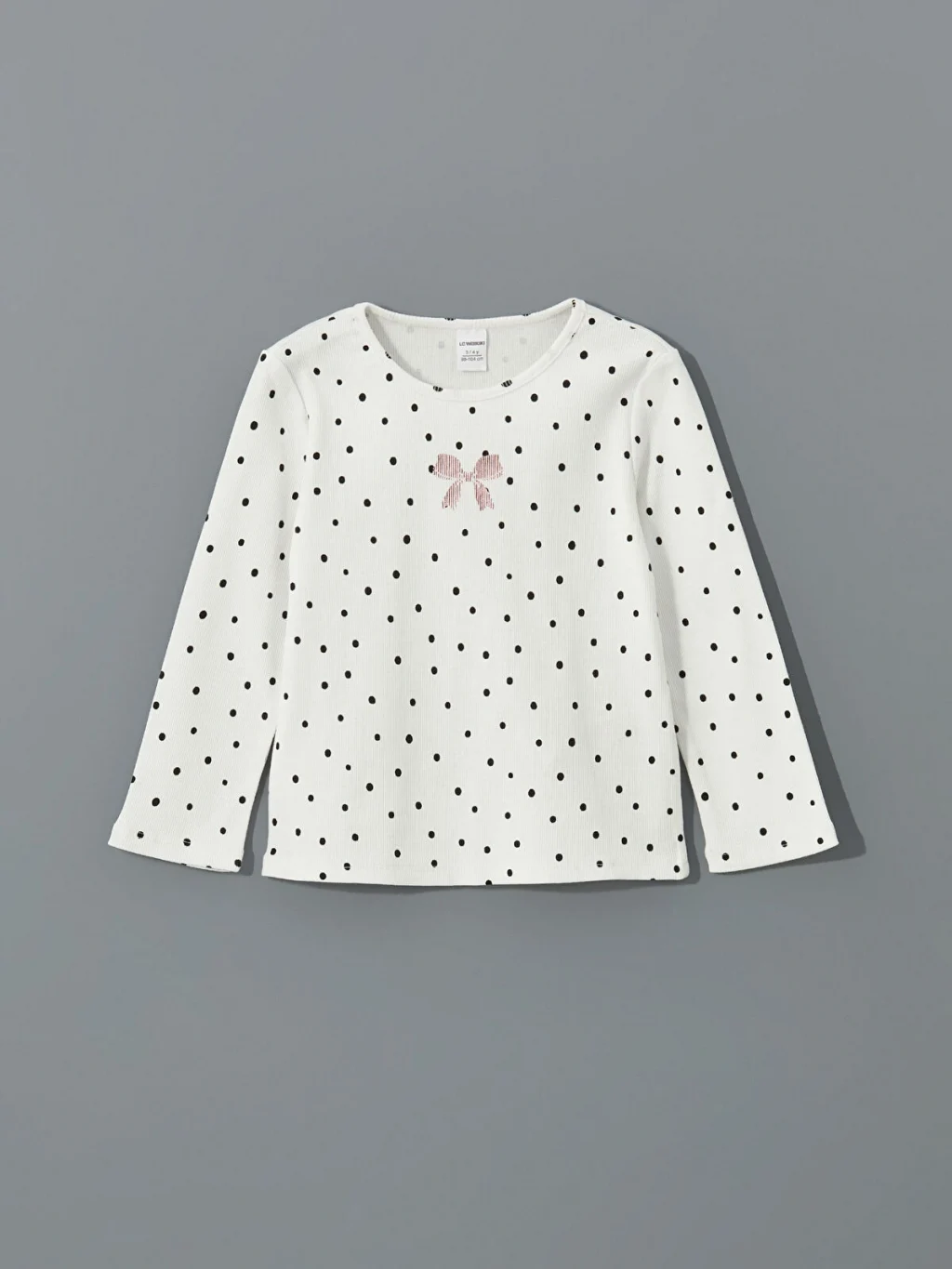 Sevimli puantiye deseniyle dikkat çeken bu bisiklet yaka kız çocuk tişört, yumuşak pamuk karışımlı kumaşı sayesinde gün boyu konfor sağlar.