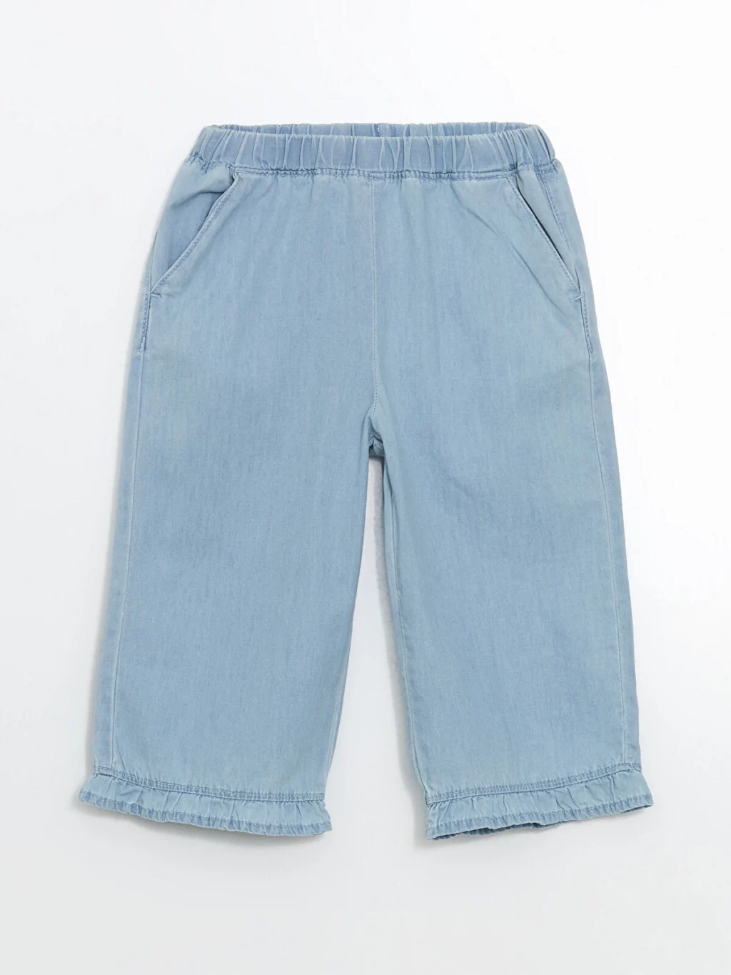 Beli lastikli wide leg kız çocuk jean pantolon, rahat kesimi ve modern tarzıyla öne çıkar. Esnek beli sayesinde konfor sunar, günlük kullanıma uygun yapısıyla stil sahibi kombinler yaratır.
