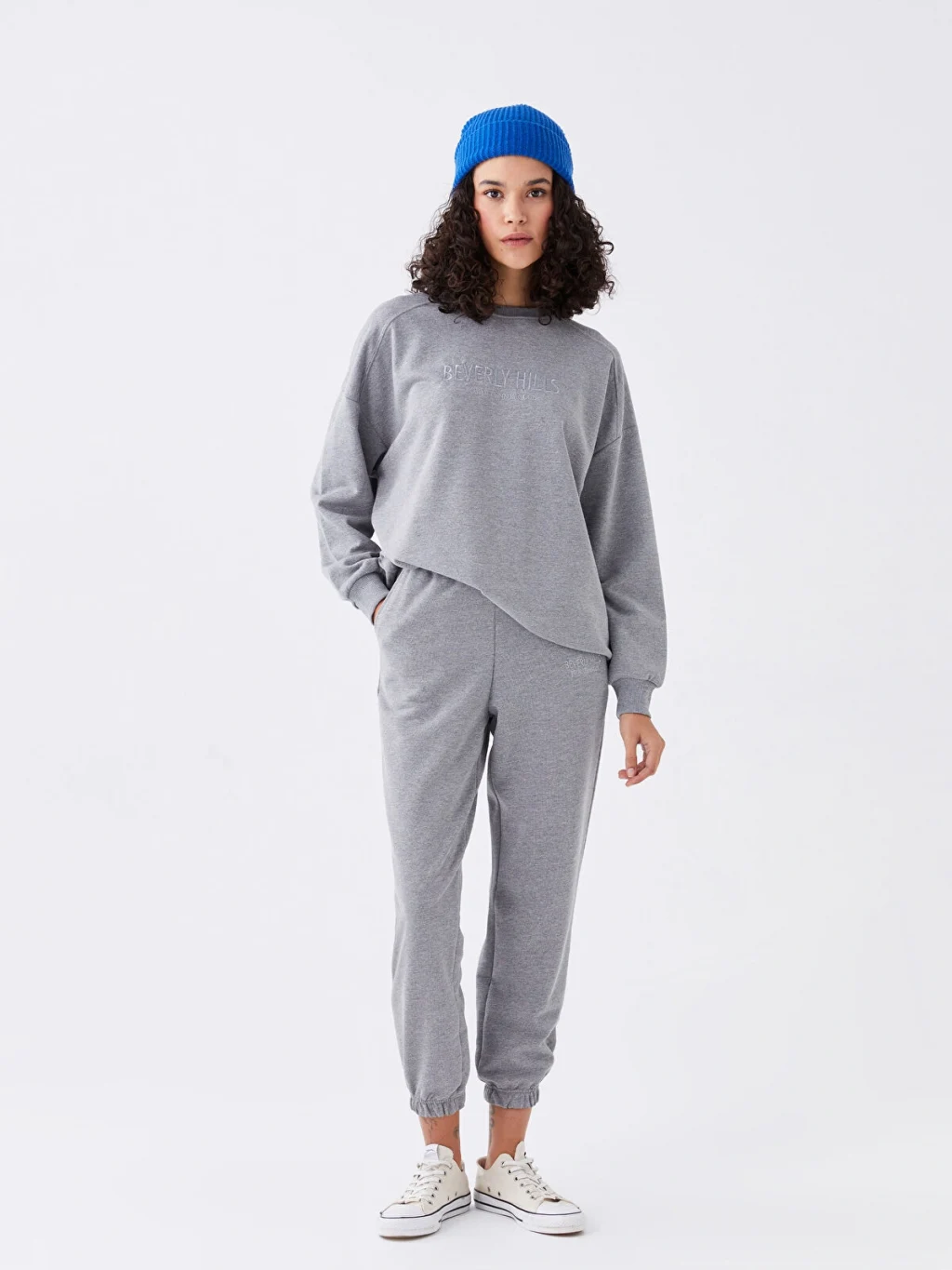 Bisiklet yaka kadın sweatshirt, geniş ve rahat kesimiyle size maksimum konfor sunar. Üzerindeki ince nakış detayları, basit ama etkileyici bir stil oluştururken, uzun kolları ve yumuşak dokusuyla her mevsimde kullanım için idealdir.