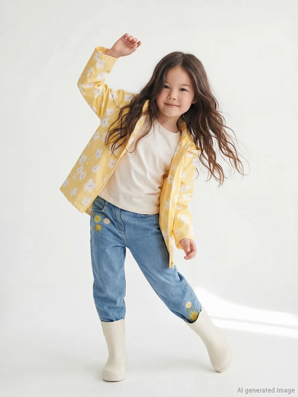 Çiçek nakışlı kız bebek jean pantolon, pamuklu kumaştan üretilmiştir. Standart kalıp, beş cepli tasarıma sahip olup fermuar ve düğme kapamalıdır.