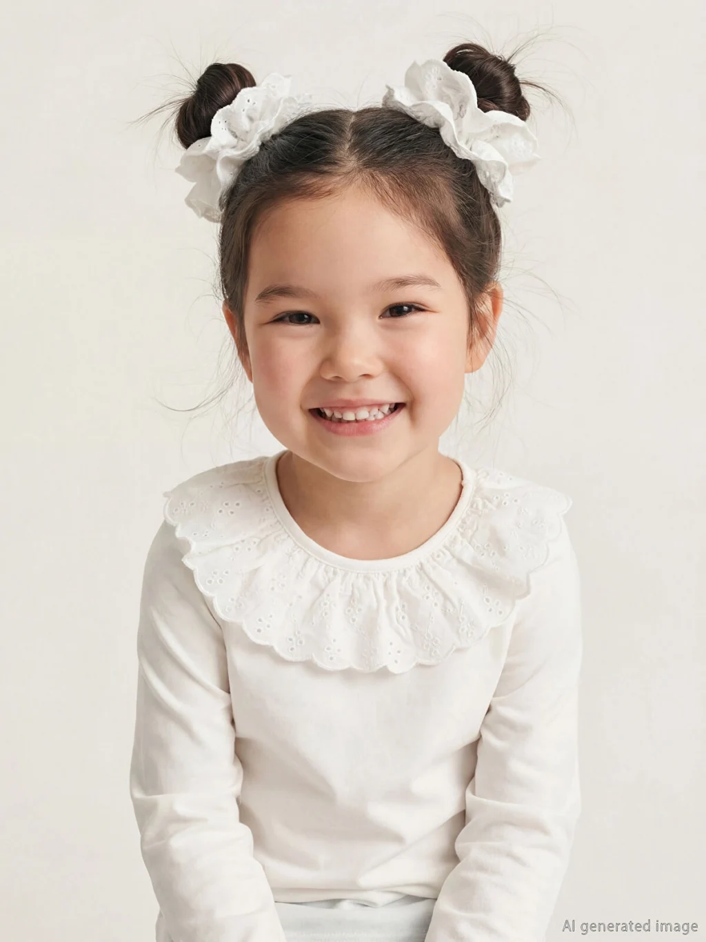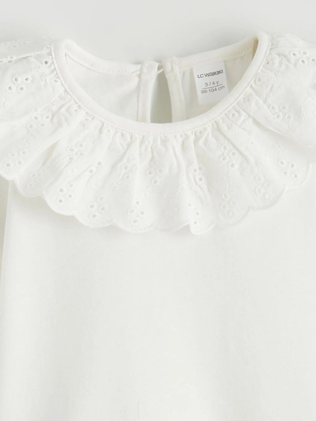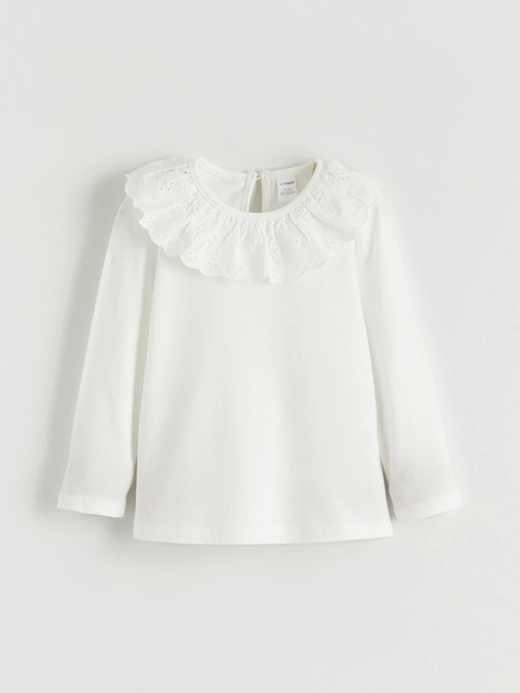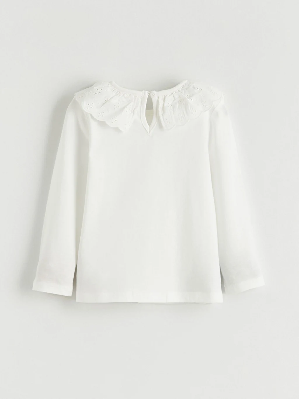 Brode yakalı, uzun kollu kız çocuk bluz, enseden düğme kapamalıdır. %100 pamuklu penye kumaştan üretilmiştir.