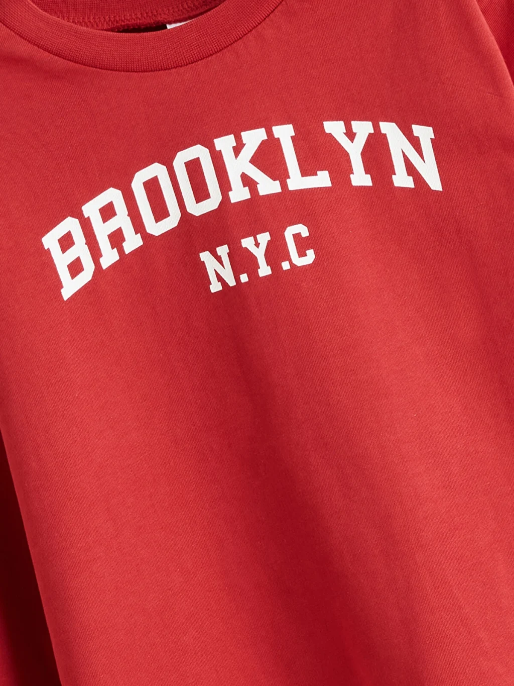 Standart kalıp, bisiklet yaka erkek bebek tişört, uzun kolludur. %100 pamuk kumaştan üretilmiş olup, önü yazı baskılıdır.