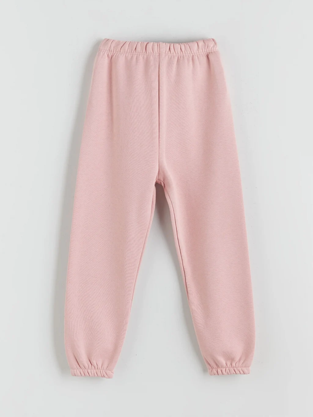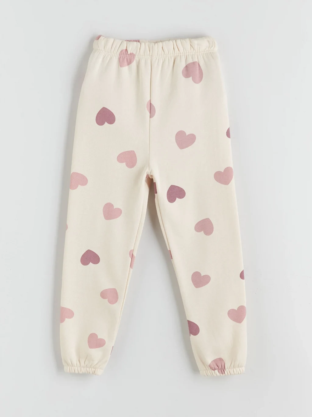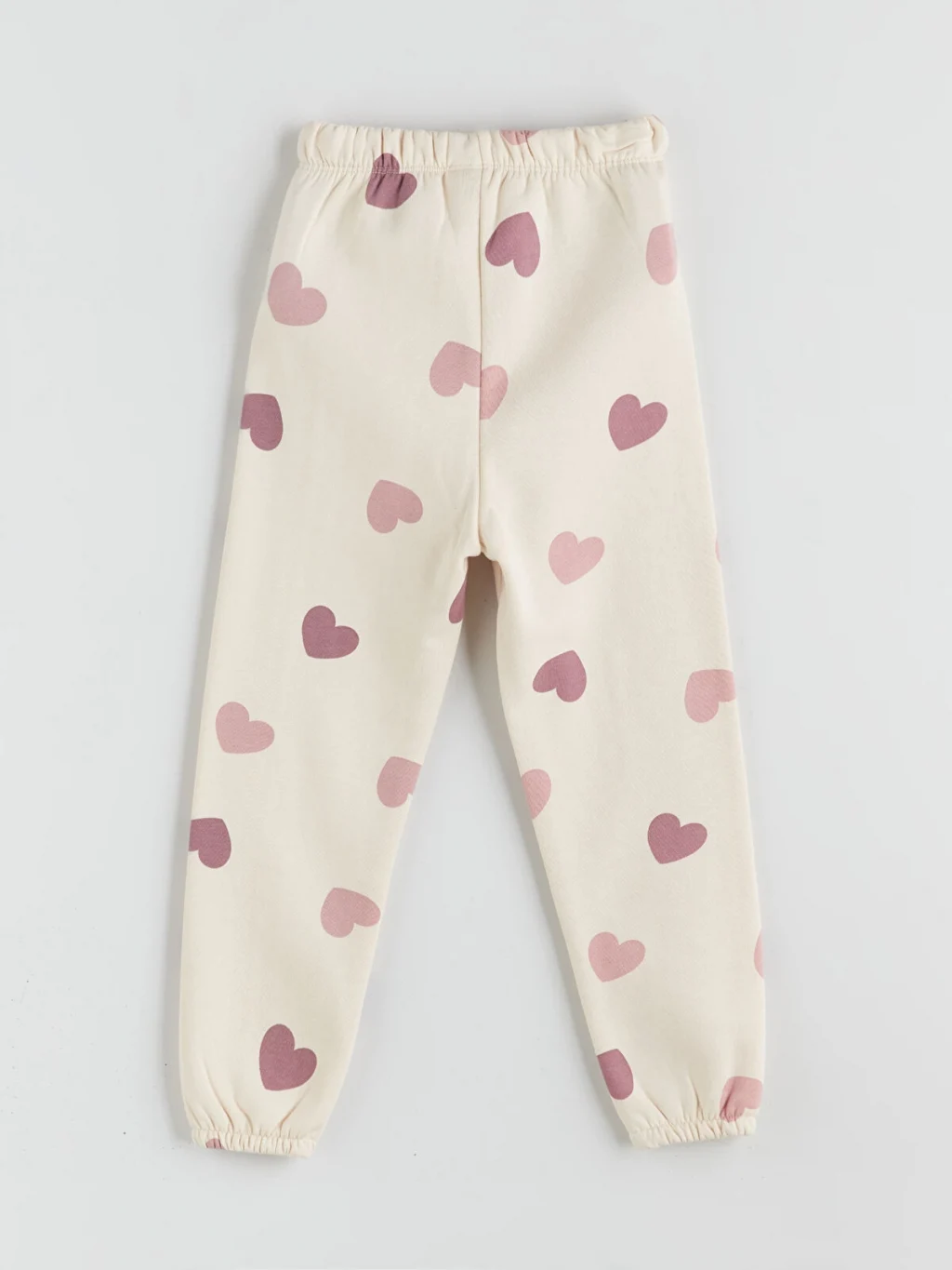 Yüksek pamuk içerikli 3 iplik şardonlu kumaştan üretilen kız çocuk tayt, beli ve paçaları lastiklidir. Biri düz, diğeri kalp desenlidir.