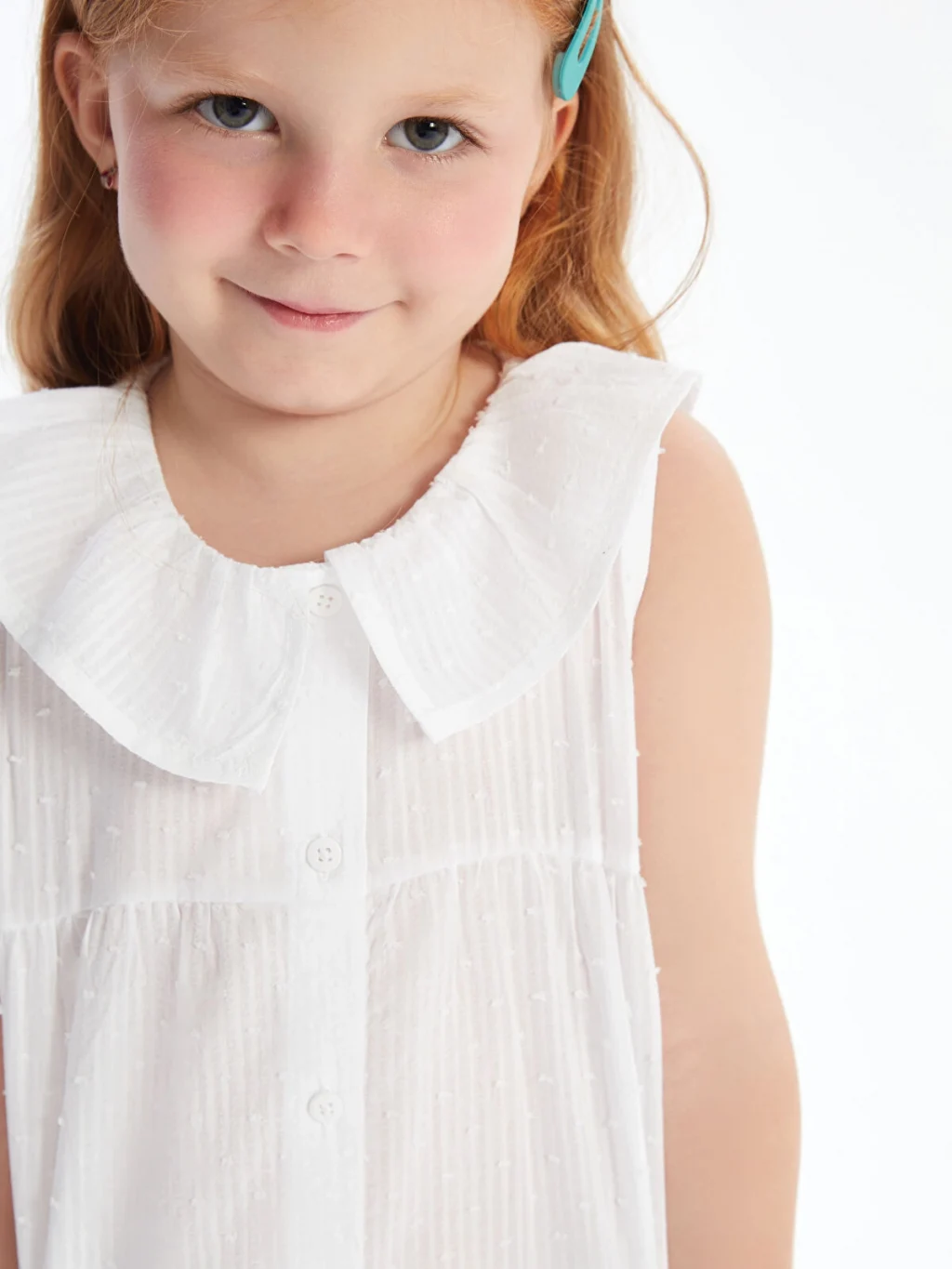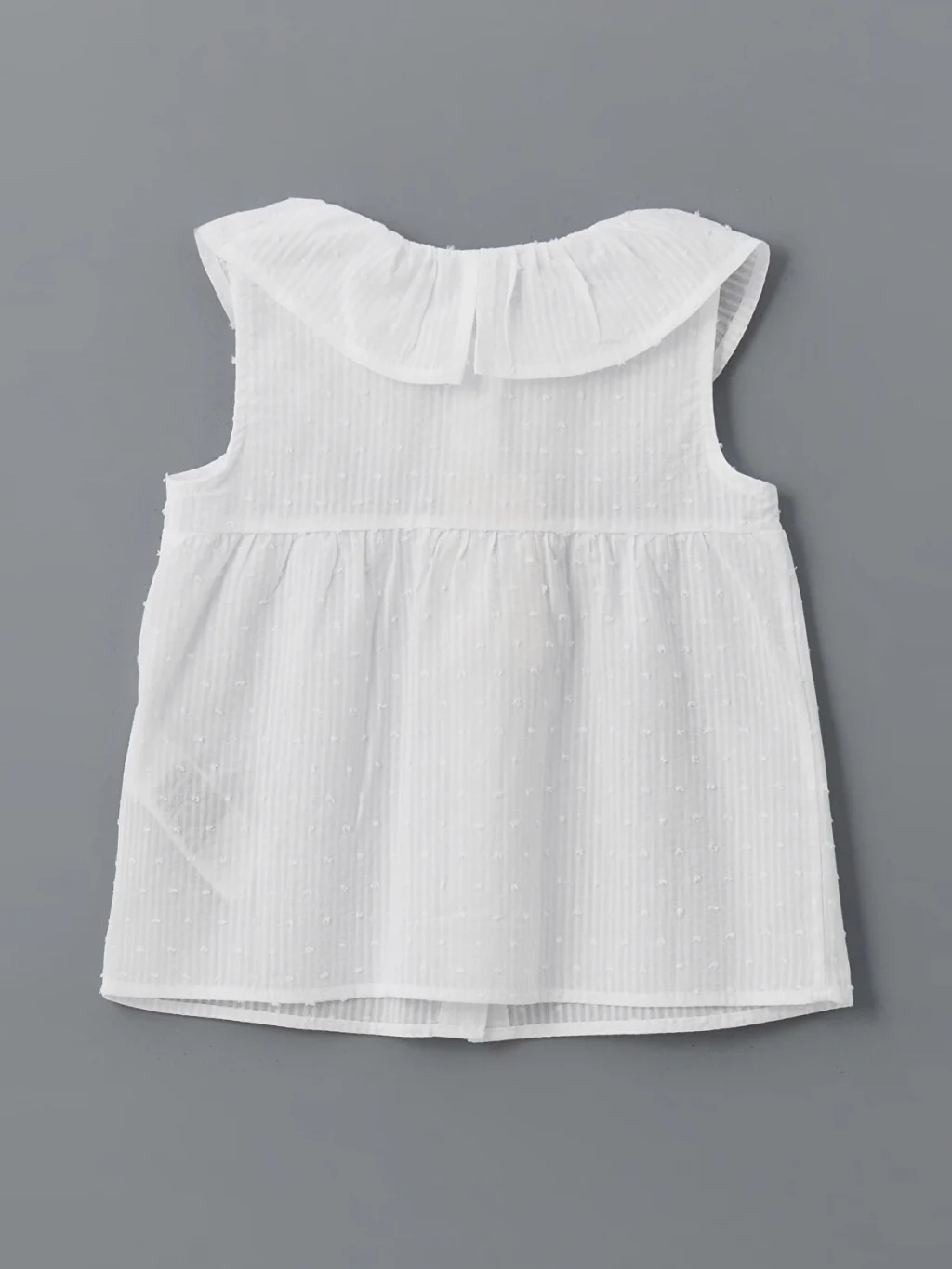 Bebe yaka kız çocuk bluz, kolsuz tasarımı ve pamuklu kumaşıyla konforlu bir kullanım sunar. Hafif ve nefes alabilir yapısıyla hareket özgürlüğü sağlar.