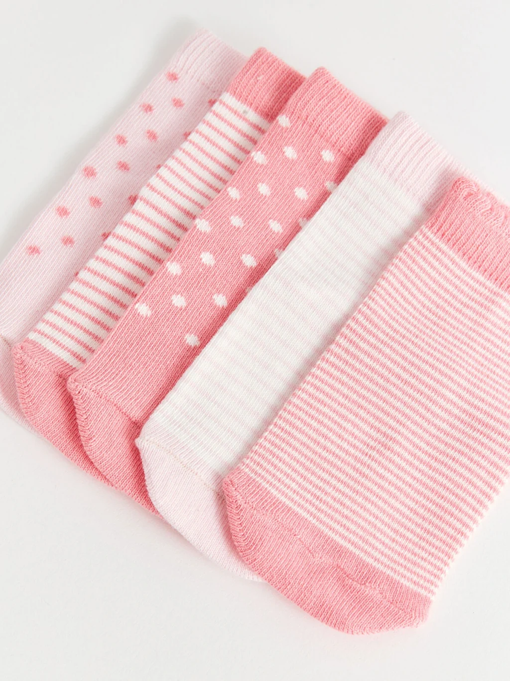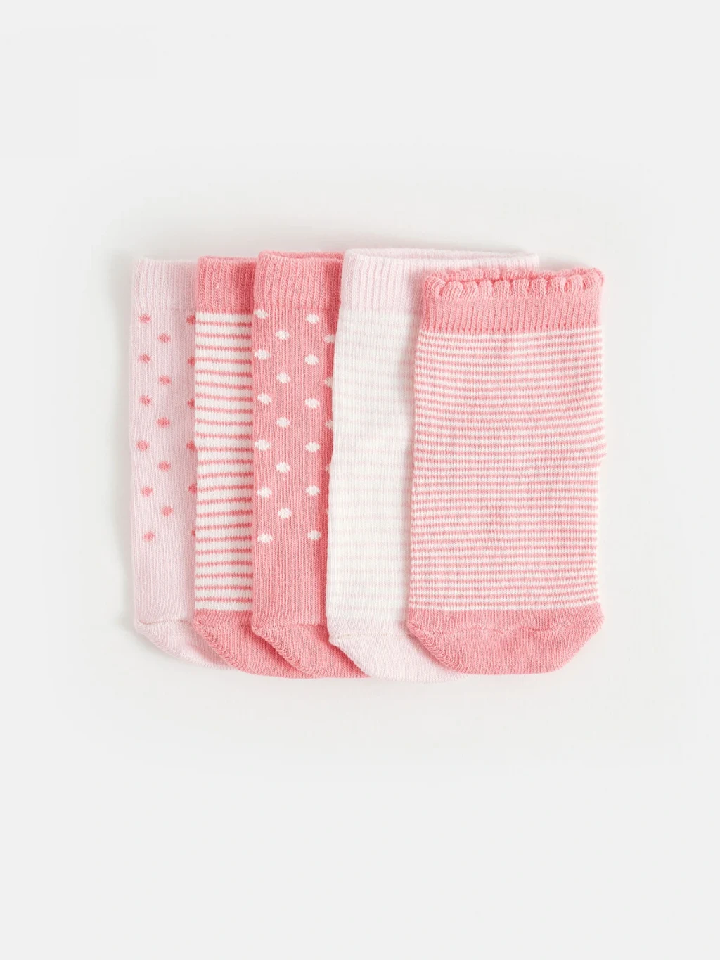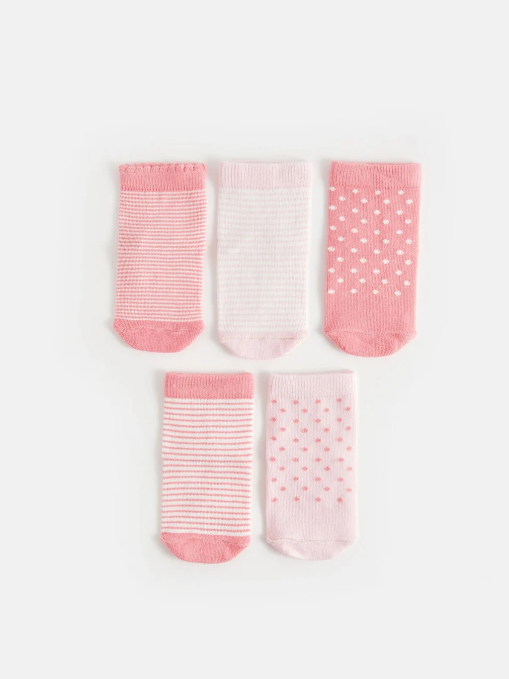 Desenli Kız Bebek Soket Çorap 5'li setten oluşup, pamuk karışımlı esnek kumaştan üretilmiştir.