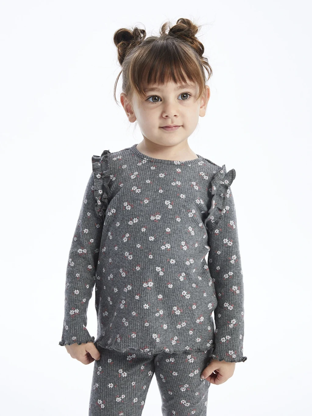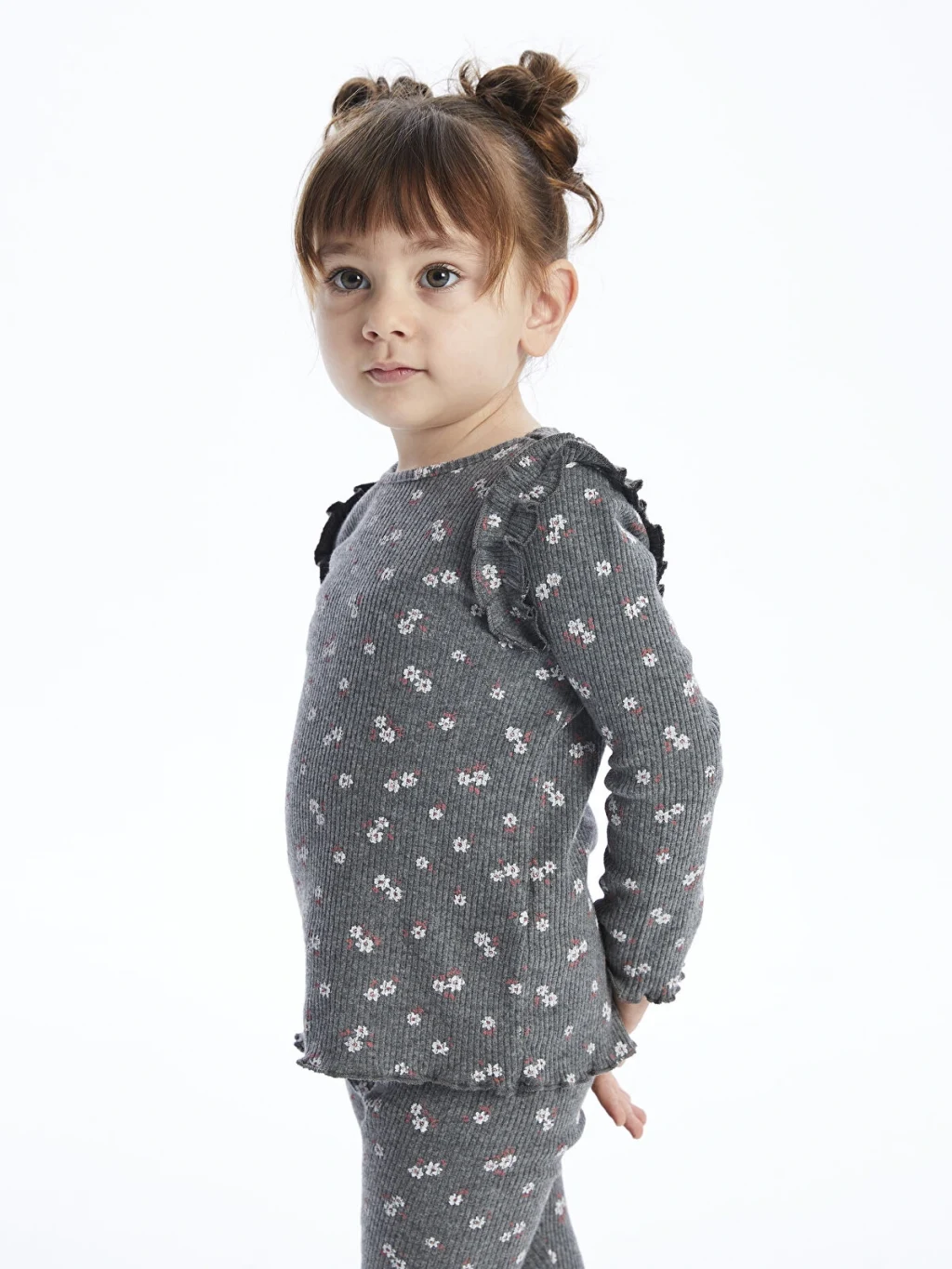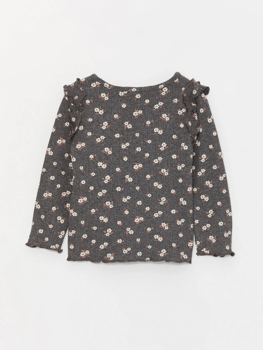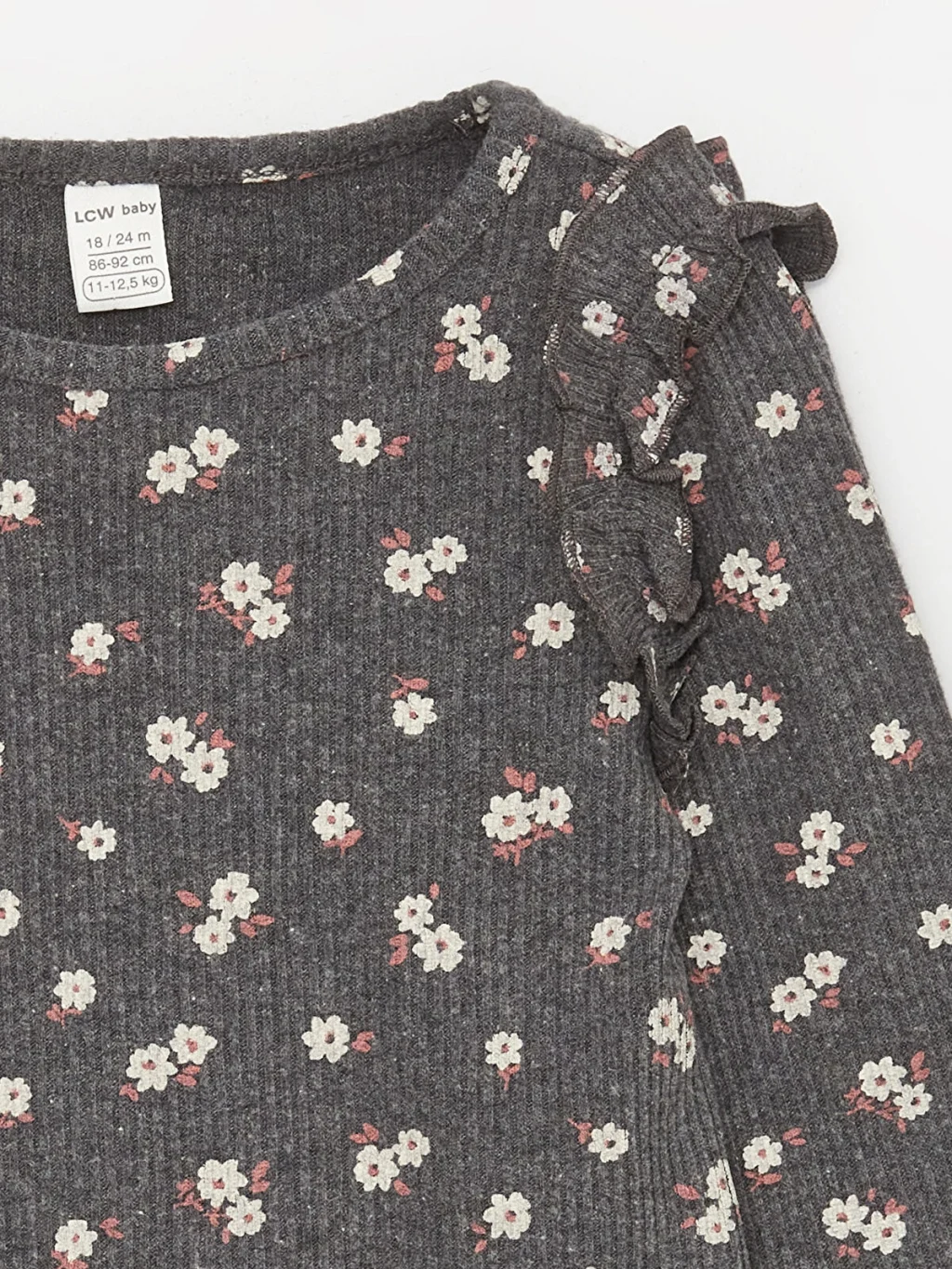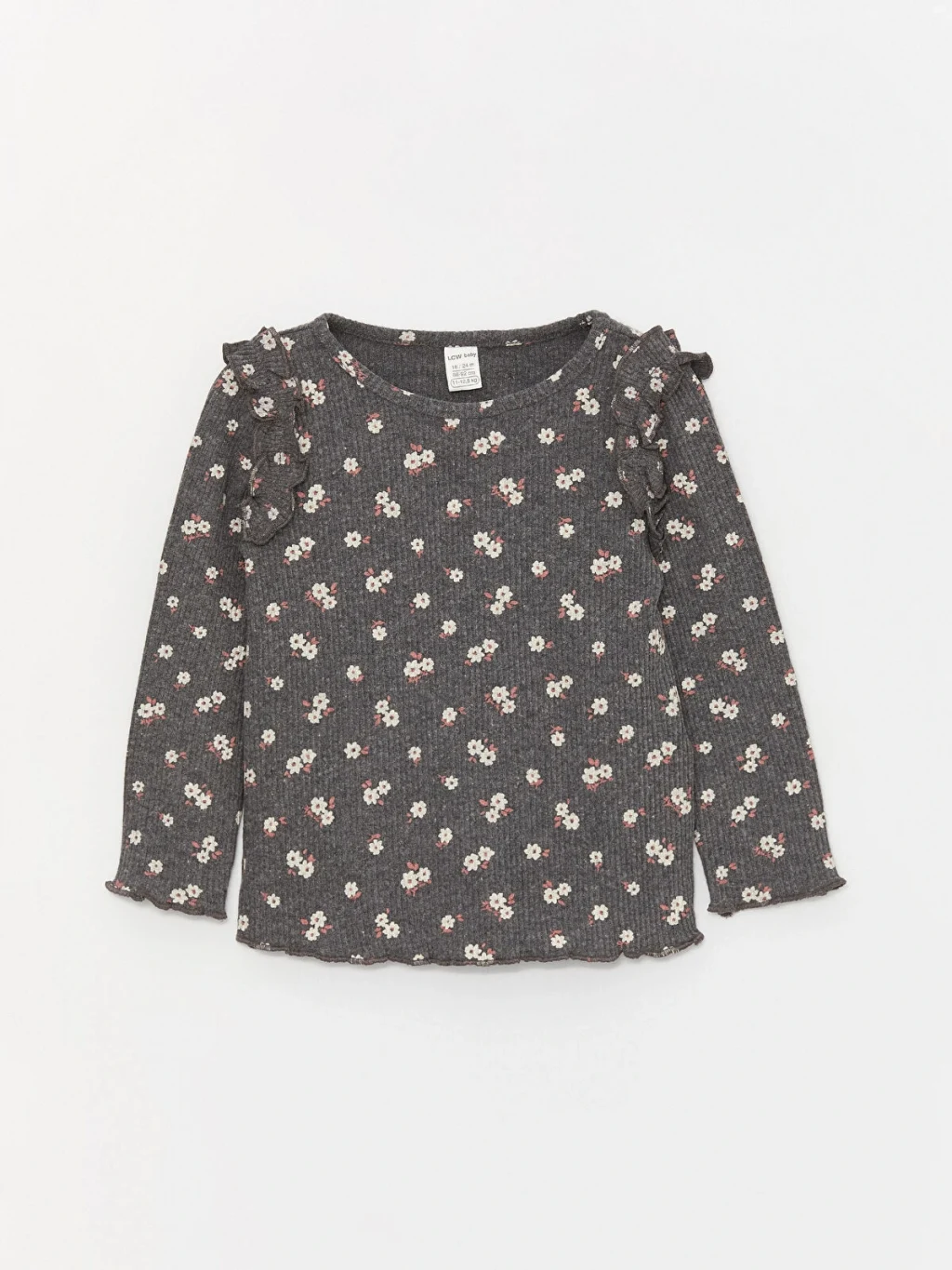 LCW baby Antrasit Bisiklet Yaka Uzun Kollu Kız Bebek Tişört