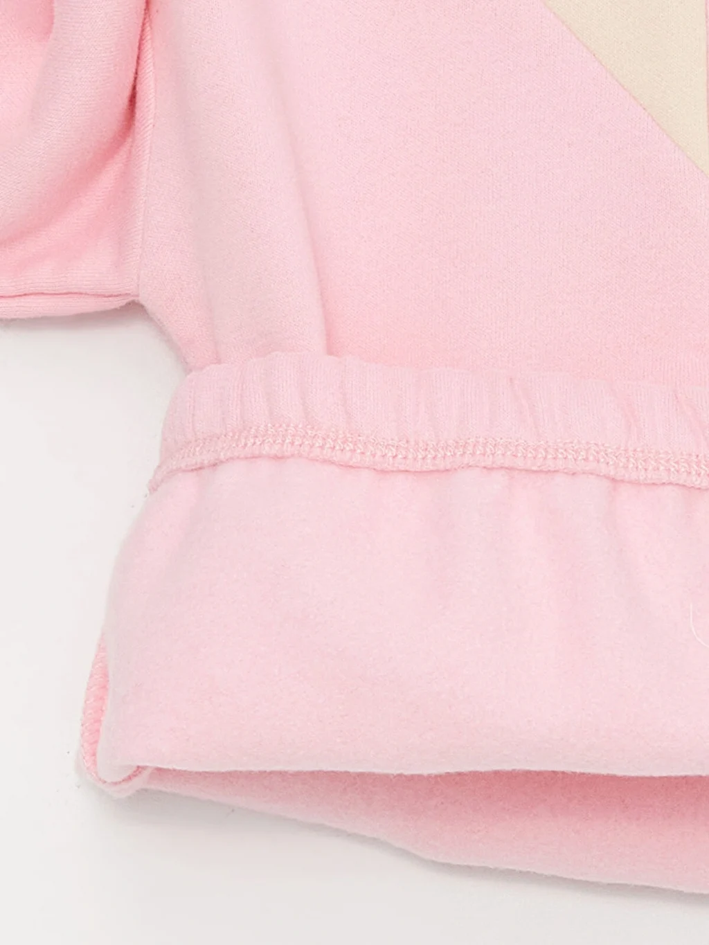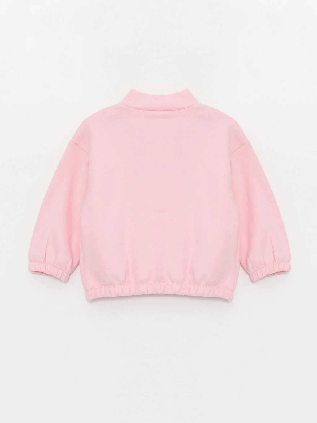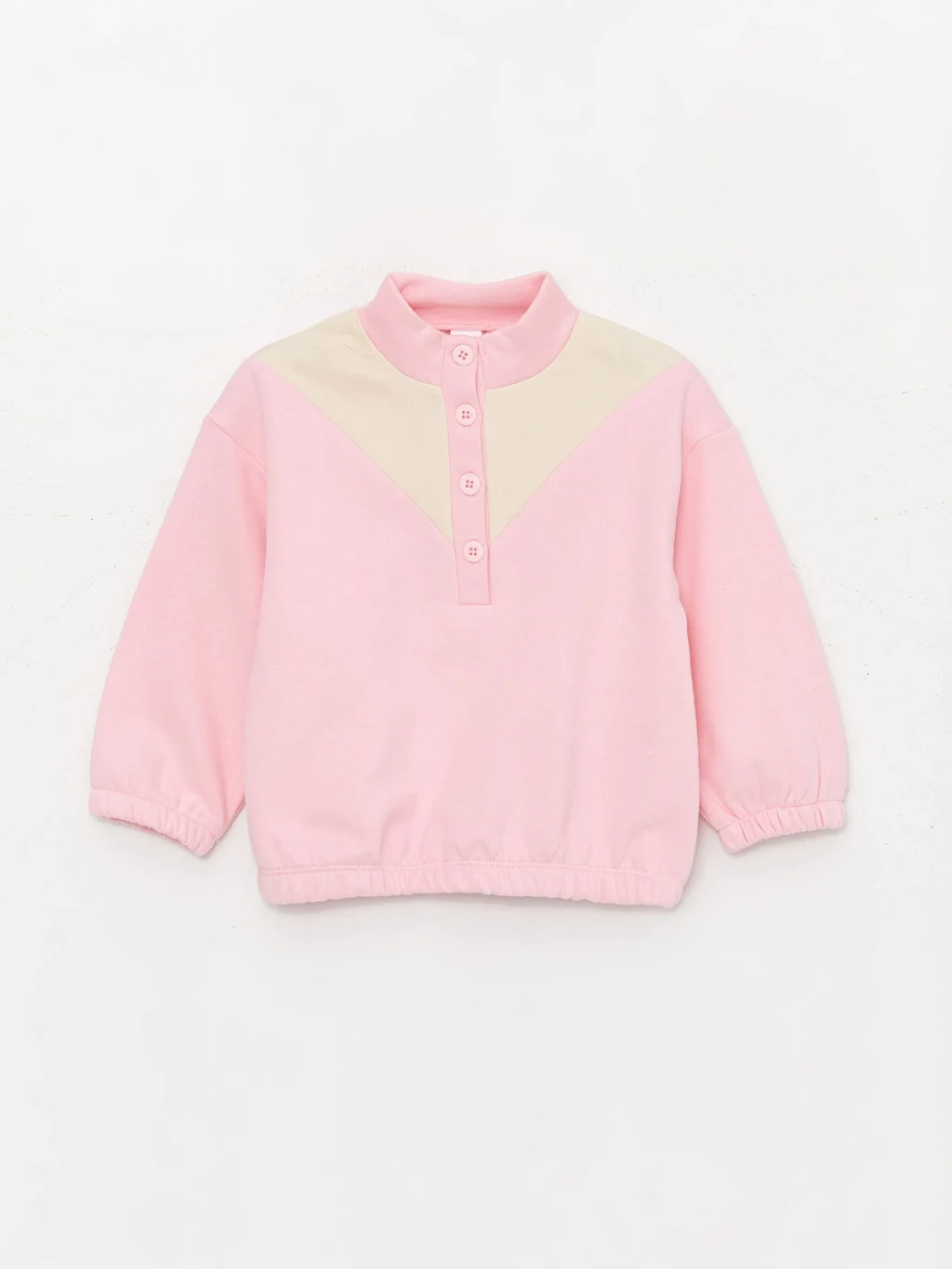 Önden düğmeli balıkçı yaka uzun kollu kız bebek sweatshirt ile yanları kargo cep modelli pantolonun bir araya geldiği şık 2'li takım.