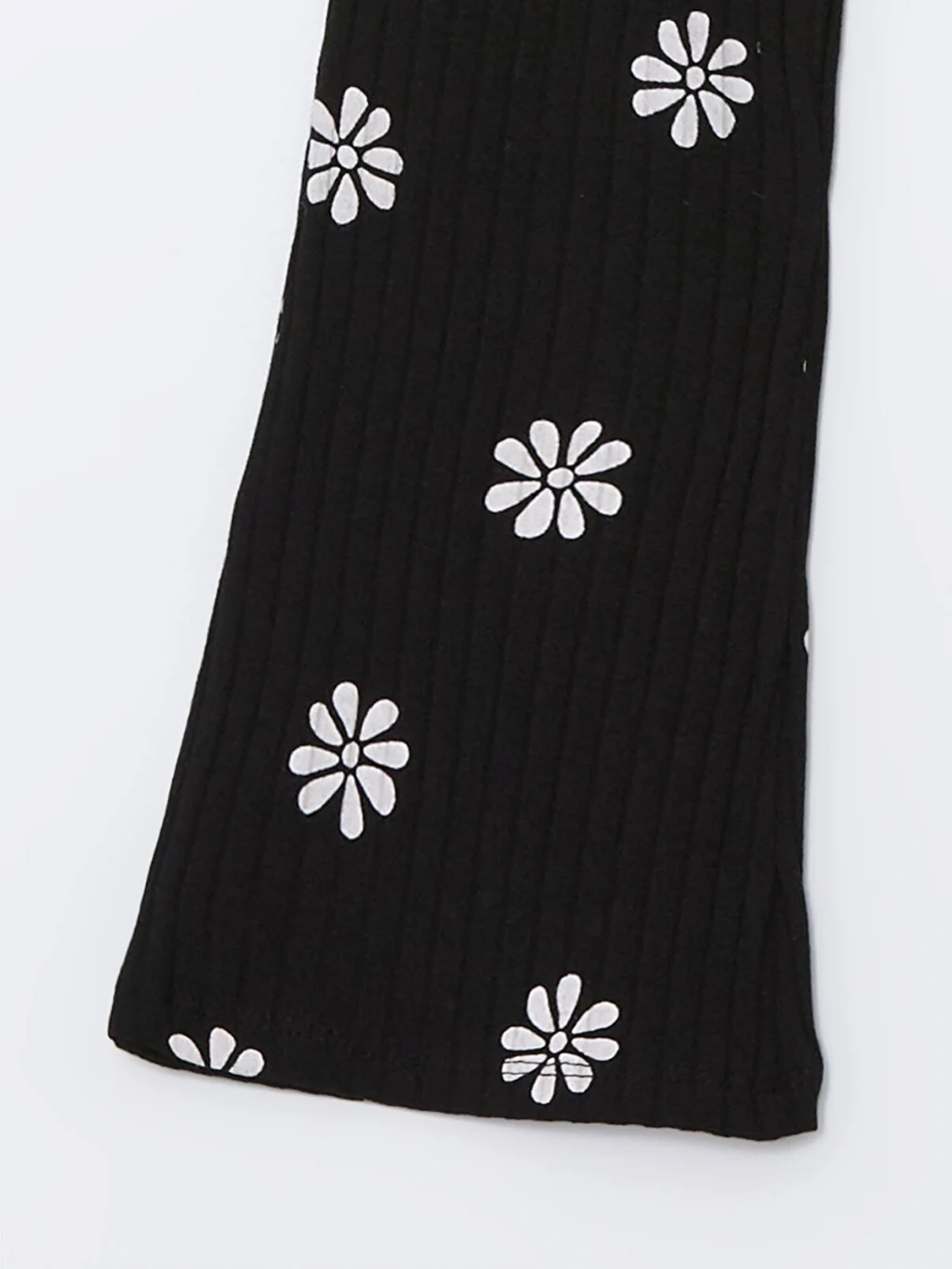 Beli lastikli çiçekli İspanyol paça kız bebek tayt, yumuşak penye kumaştan üretilmiştir. Esnek beli sayesinde kolayca giydirilip çıkarılabilir ve bebeğinize rahatlık sağlar.