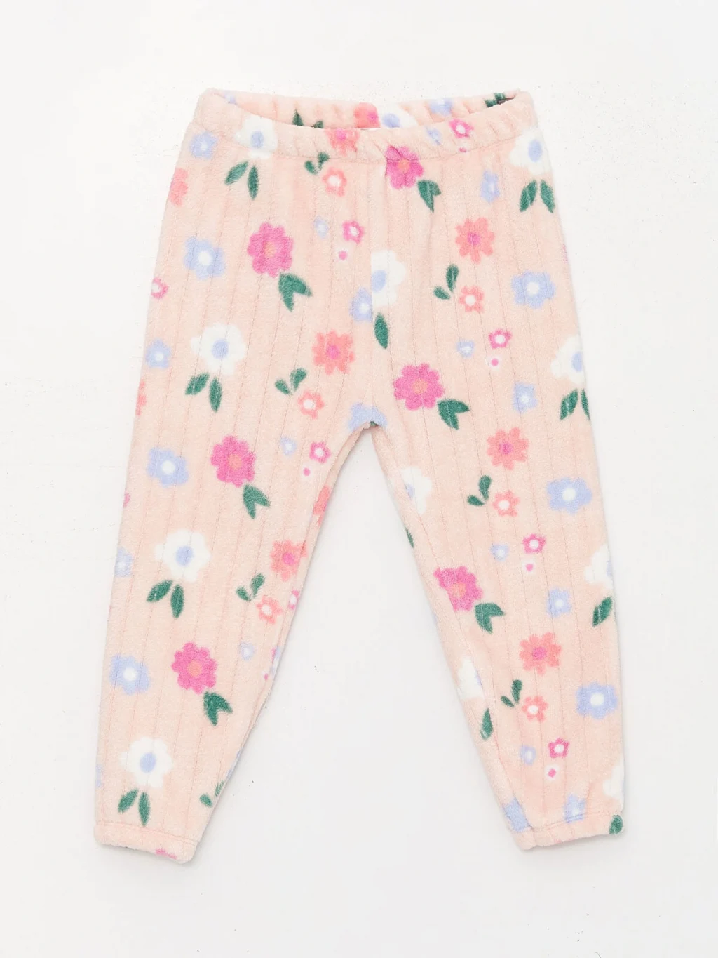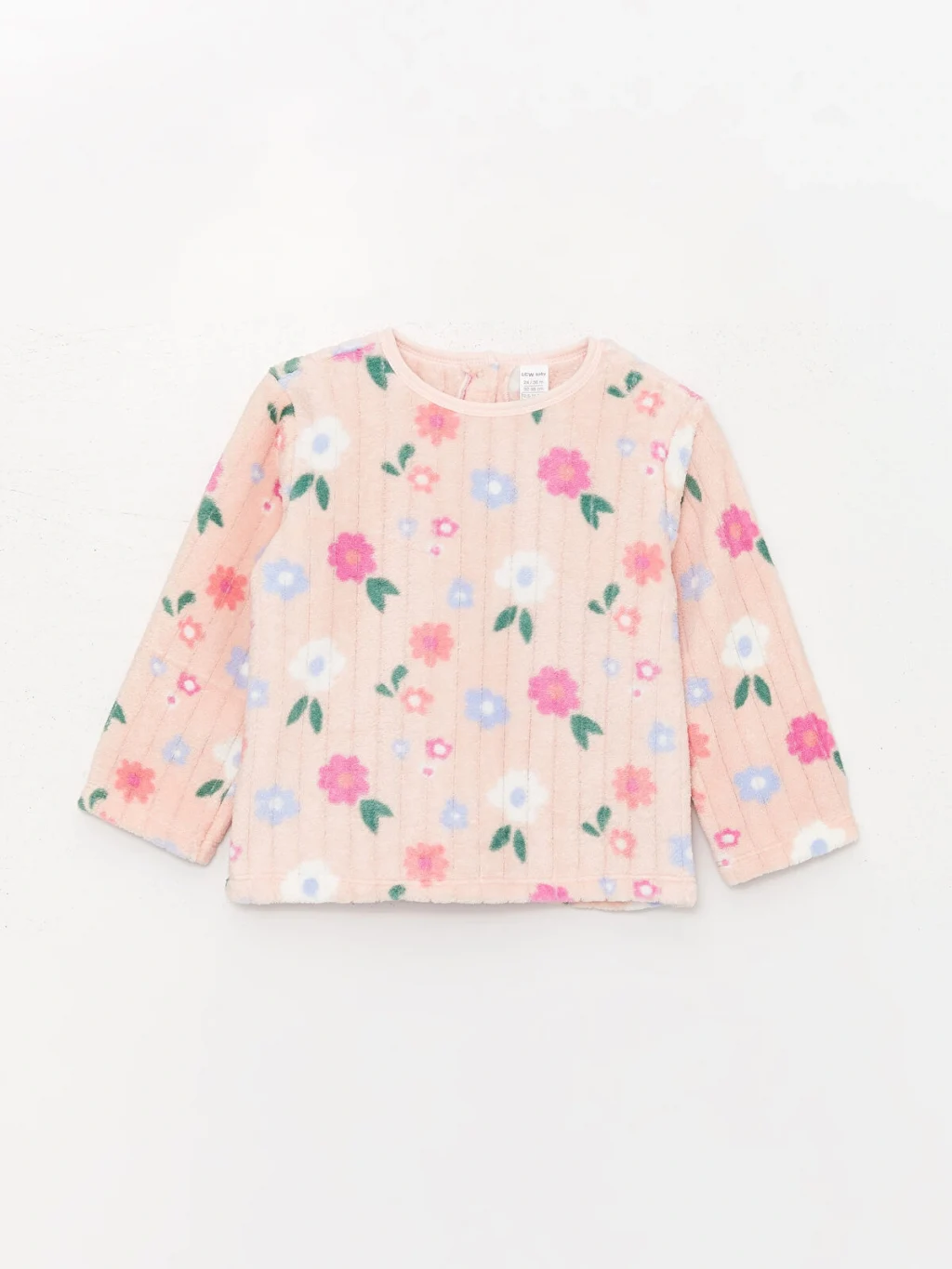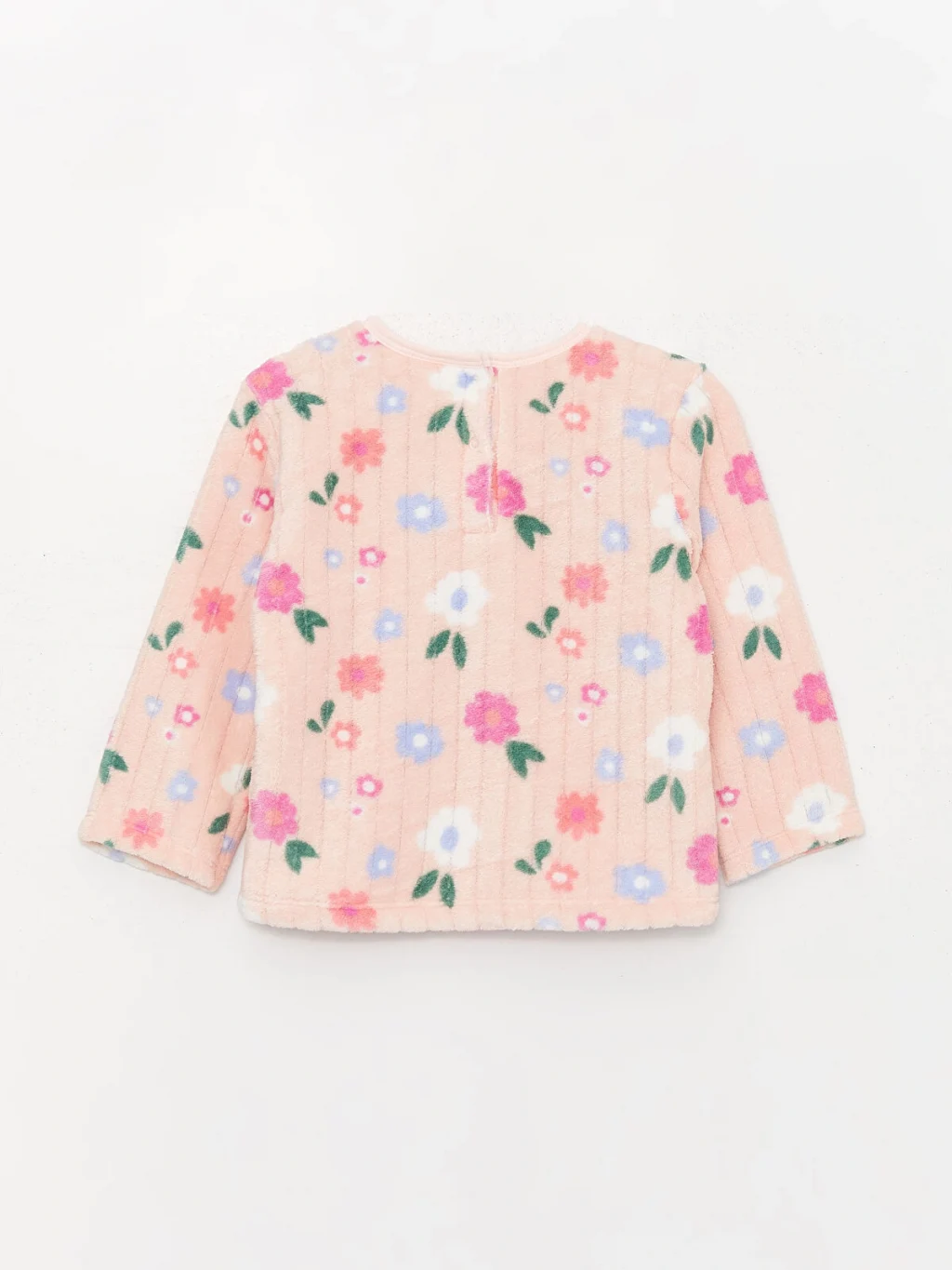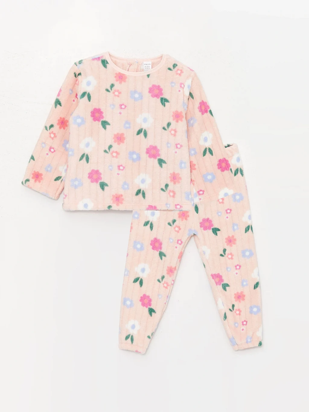 Bisiklet yaka uzun kollu desenli pelüş kız bebek pijama takımı, pelüş kumaşı sayesinde bebeğinizin uyku kalitesini artırır. Ayrıca, sevimli çiçek deseni ile ona tarz katarken, sıcak ve rahat bir deneyim sunar.