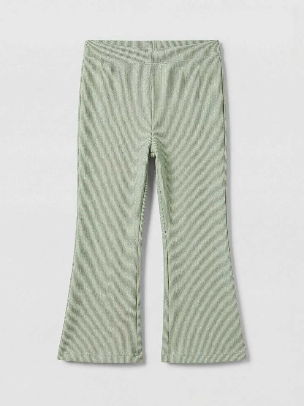 Kaşkorse kumaştan üretilmiş kız çocuk tayt, beli lastikli tasarıma ve ispanyol paça kesimine sahiptir.