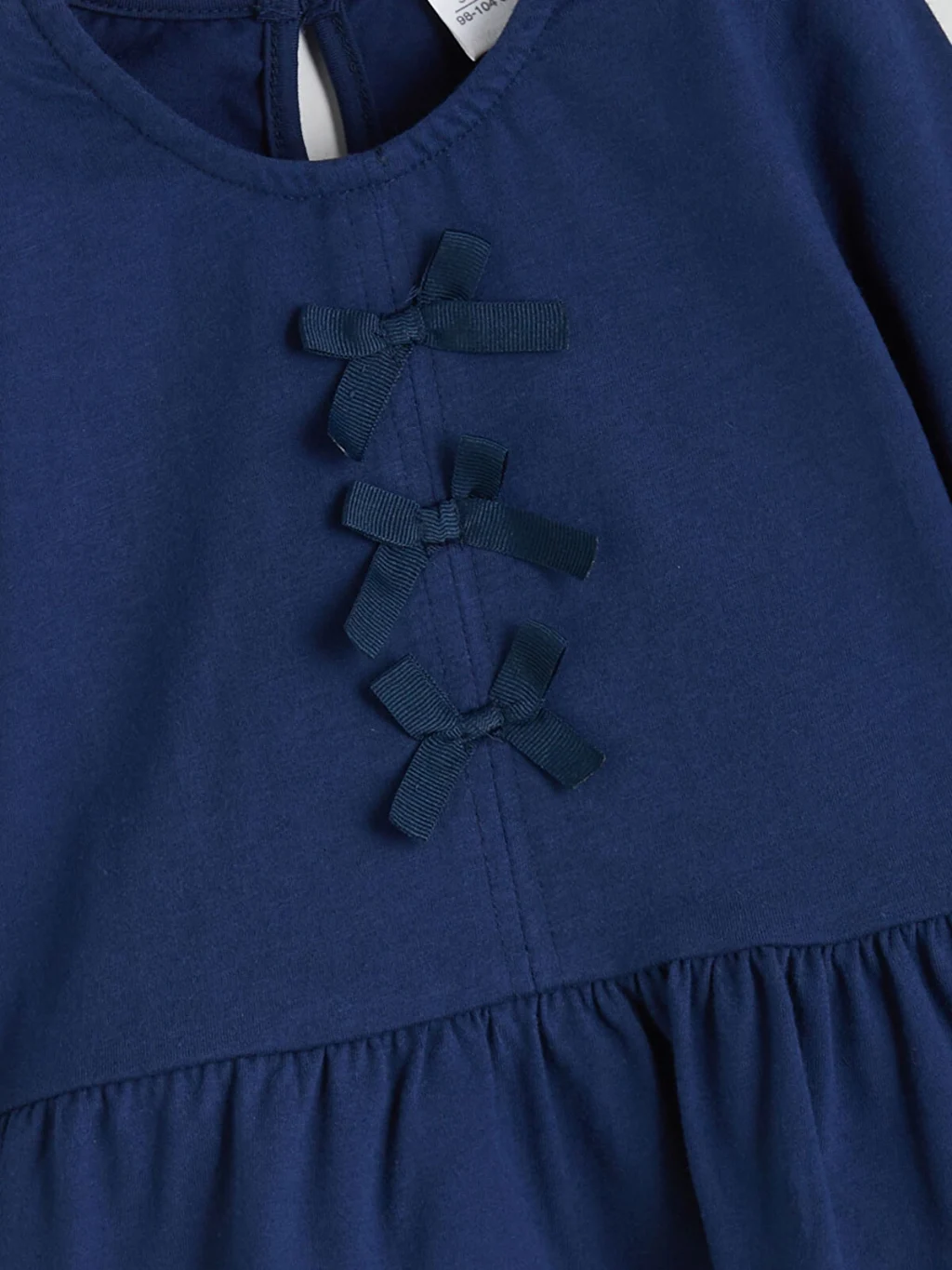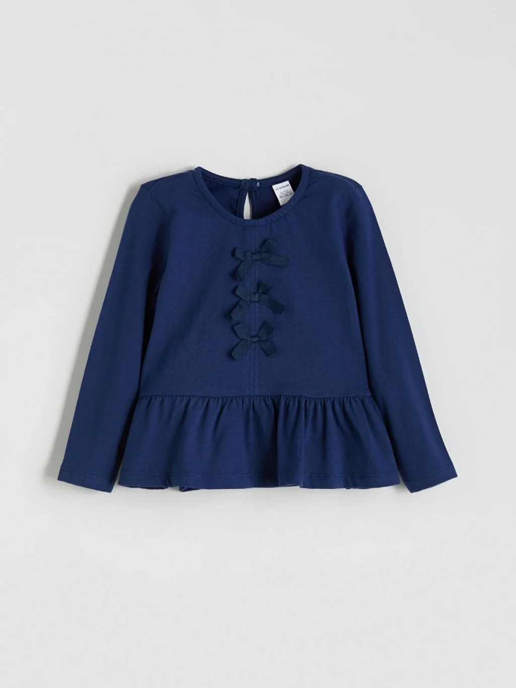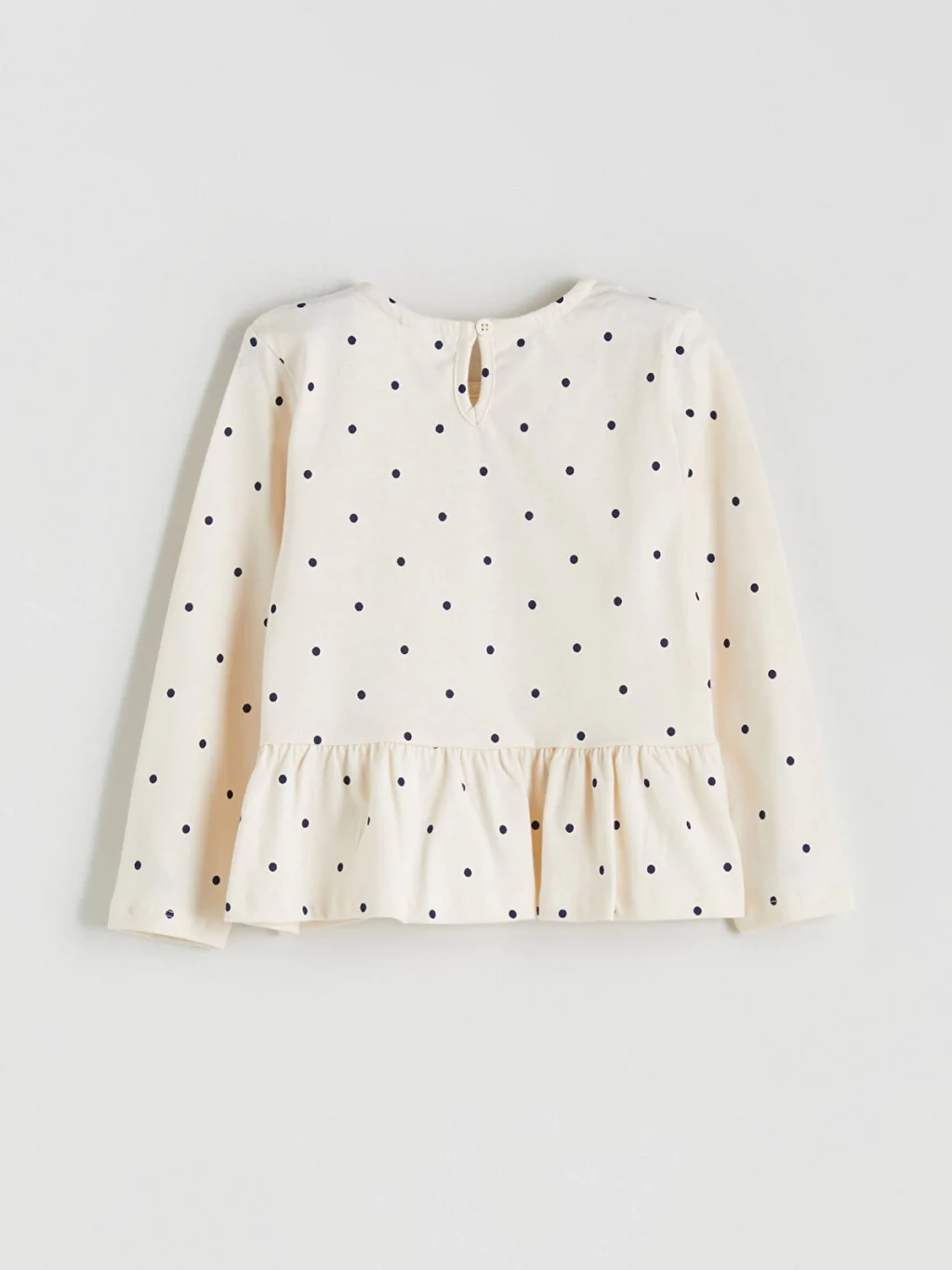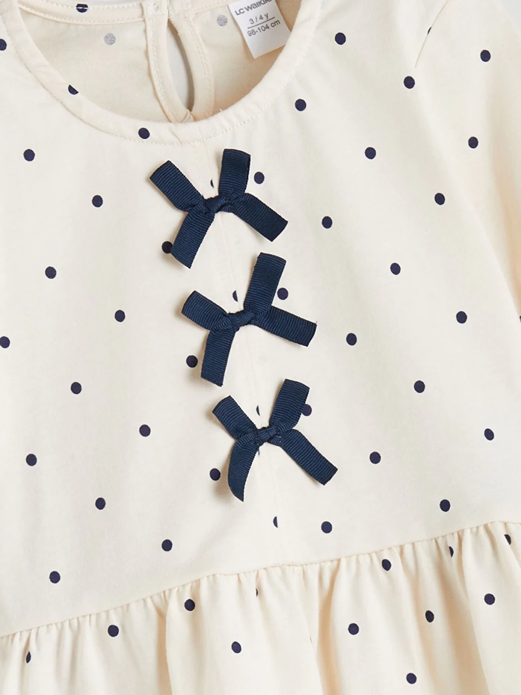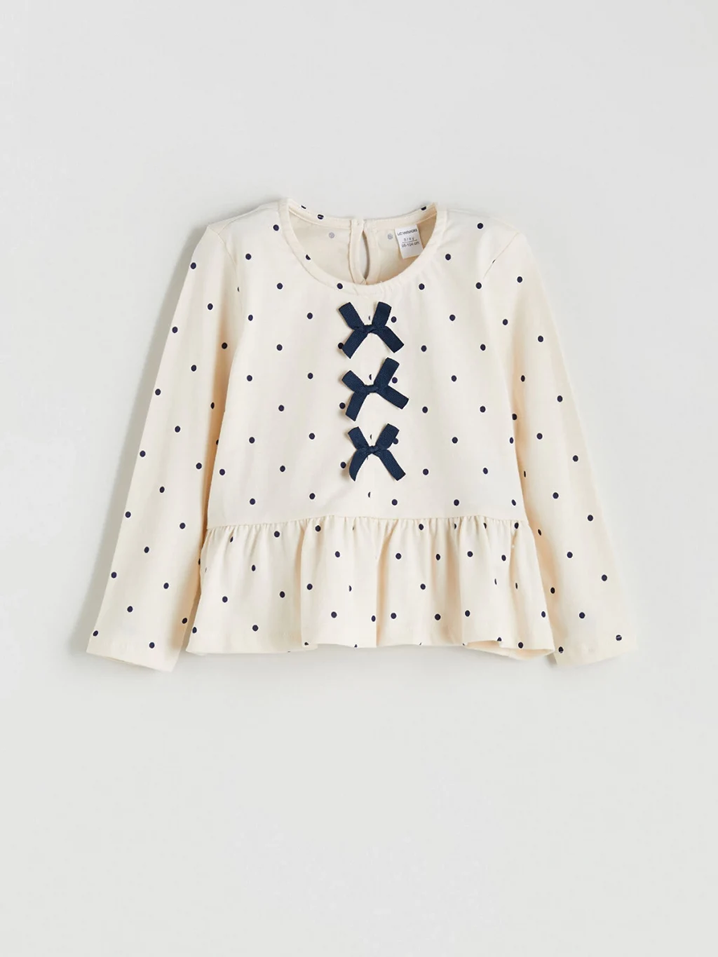 Puantiyeli ve düz olmak üzere 2 adet bluzdan oluşan paket %100 pamuklu kumaştan üretilmiştir. Fırfırlı ve kurdele detaylı tasarıma sahiptir.