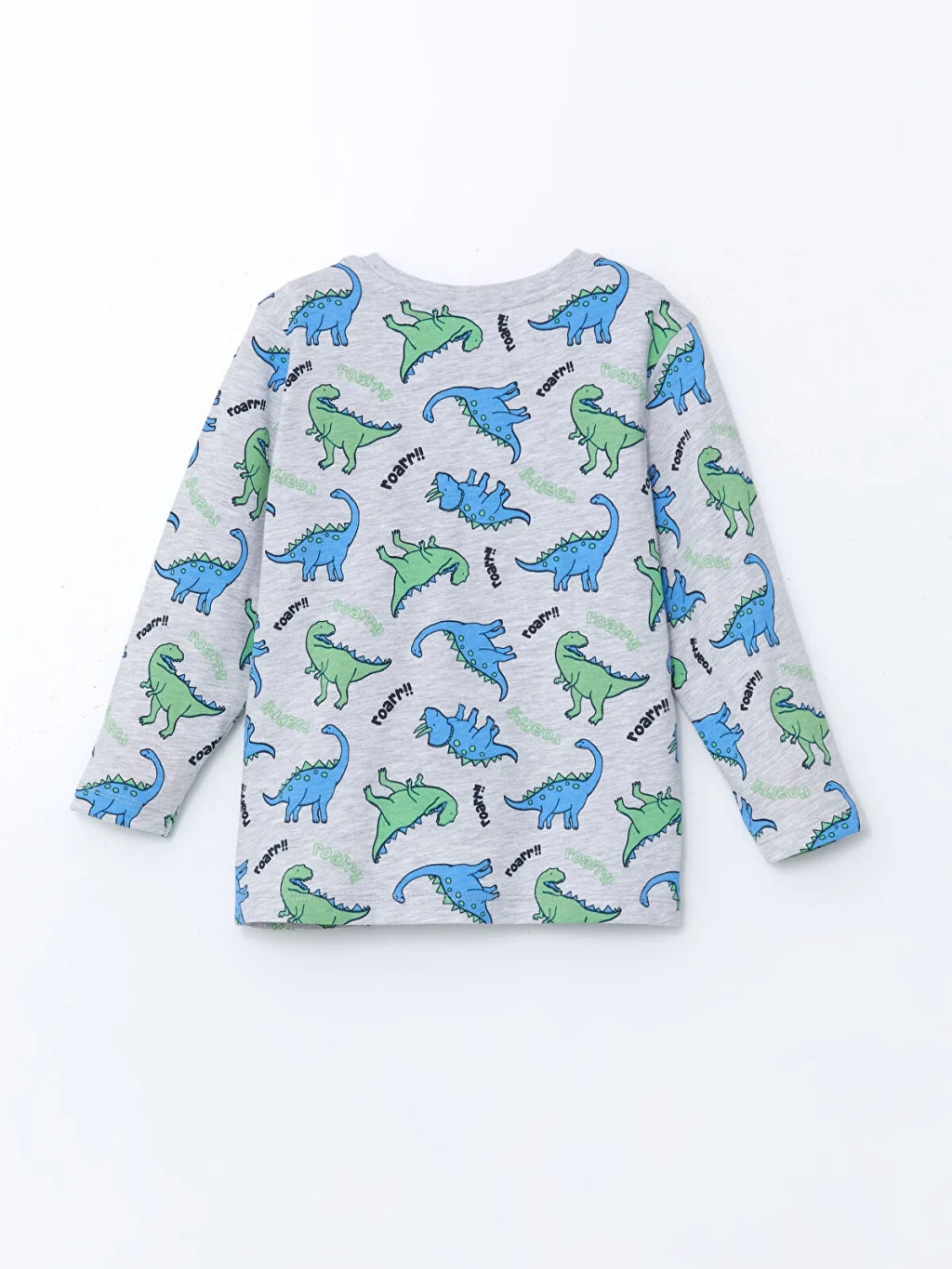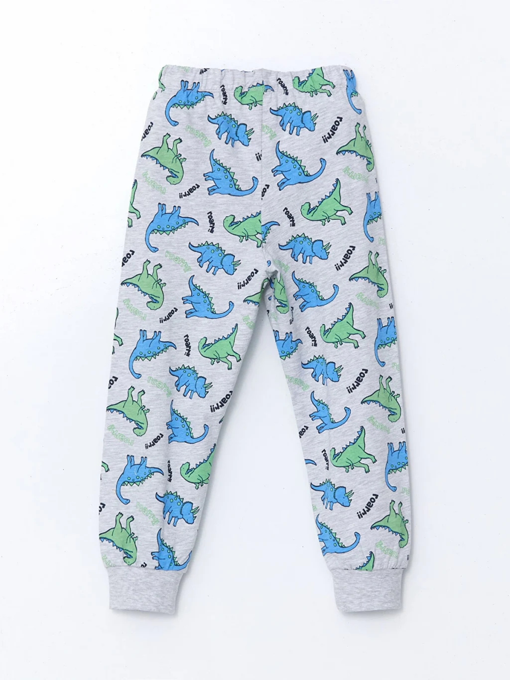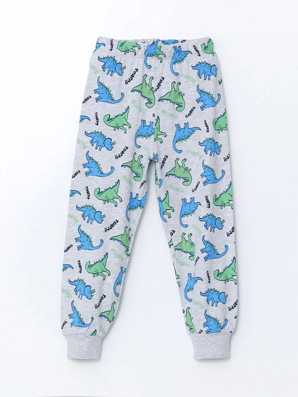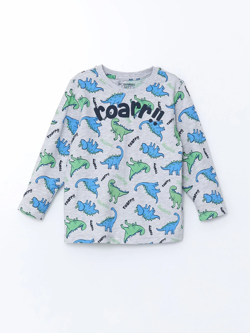 Bisiklet yaka dinozor baskılı erkek çocuk pijama takımı, pamuklu penye kumaşıyla yumuşak ve rahat bir kullanım sunar. Eğlenceli dinozor baskısı ve konforlu tasarımıyla uyku saatlerini keyifli hale getirir.