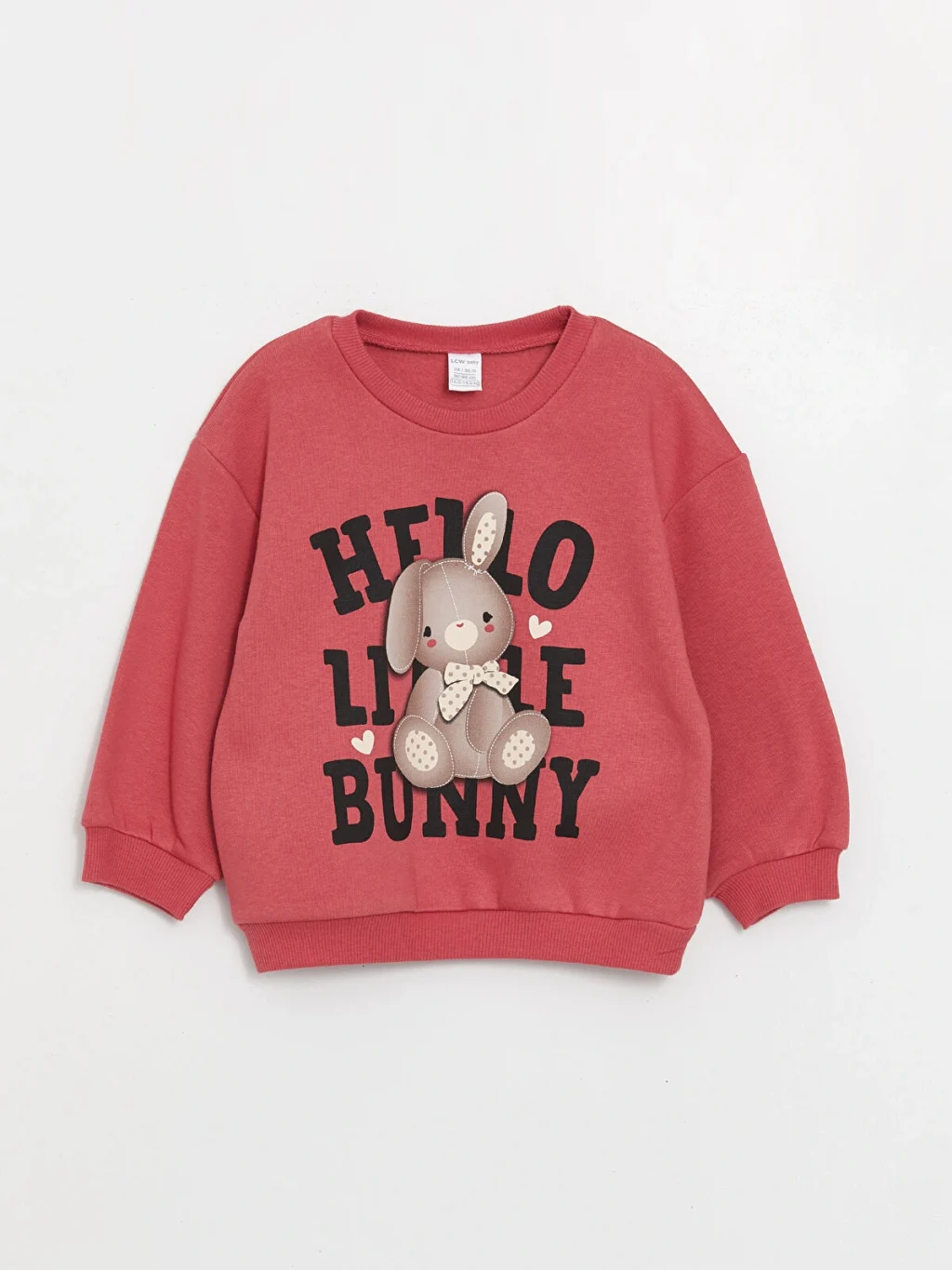3 iplik şardonlu kumaştan üretilen kız bebek sweatshirt, sevimli baskısı ile dikkat çeker. Manşetleri ve etek ucu ribanalı detayları, rahat bir oturuş sağlar. Bebeğiniz için konforlu bir seçenek.