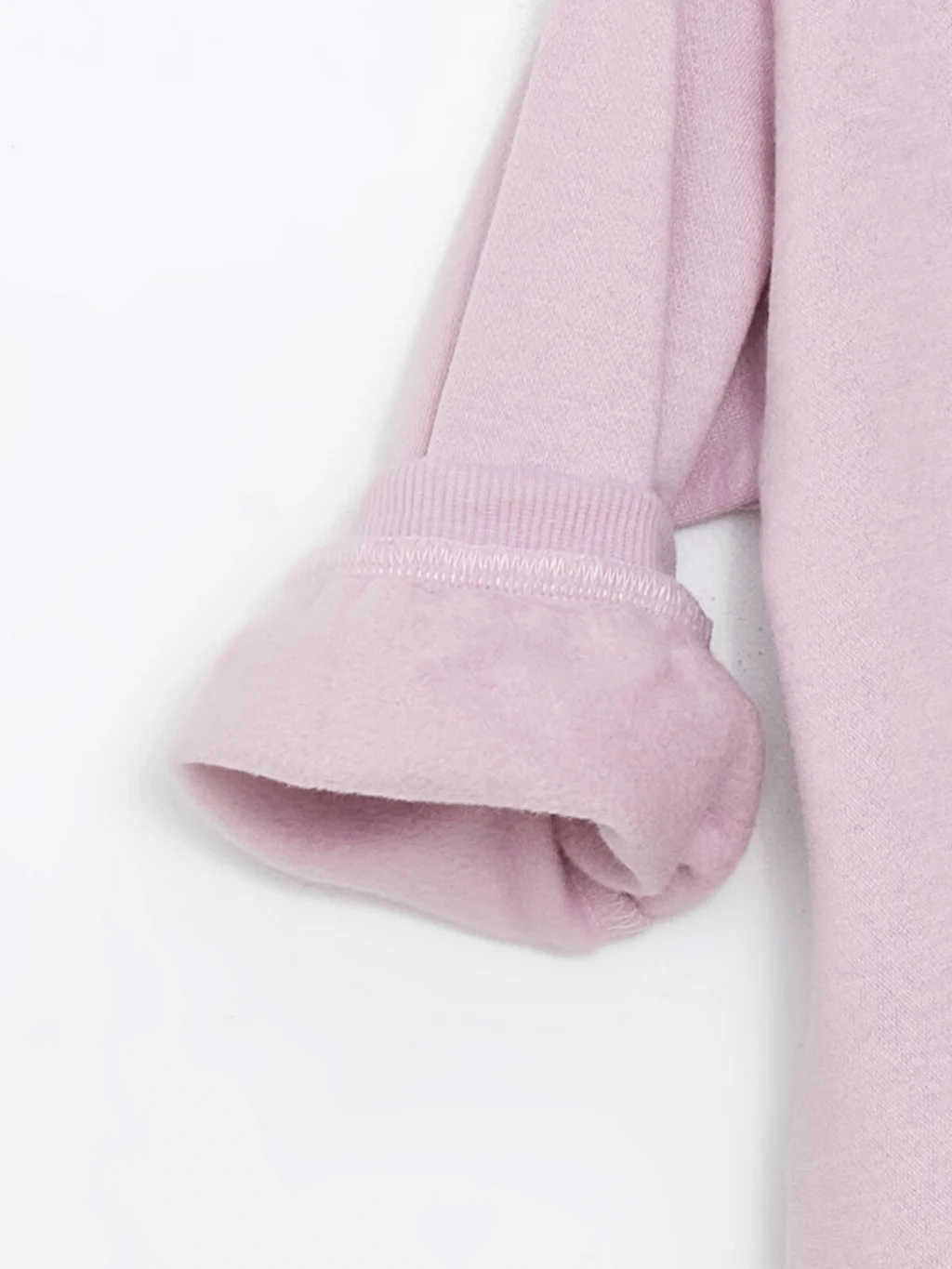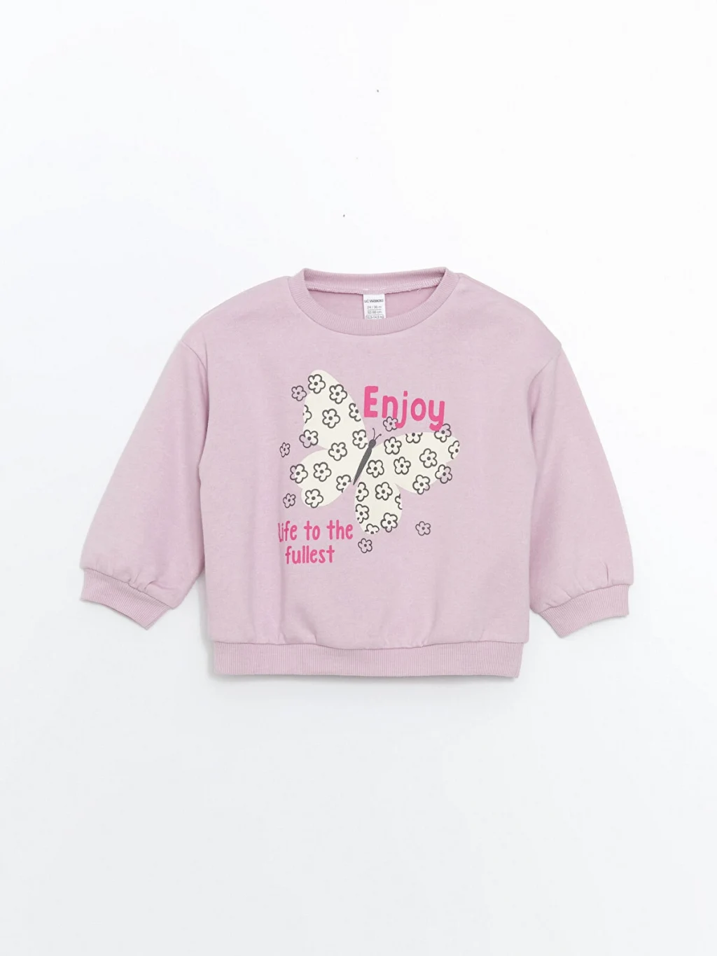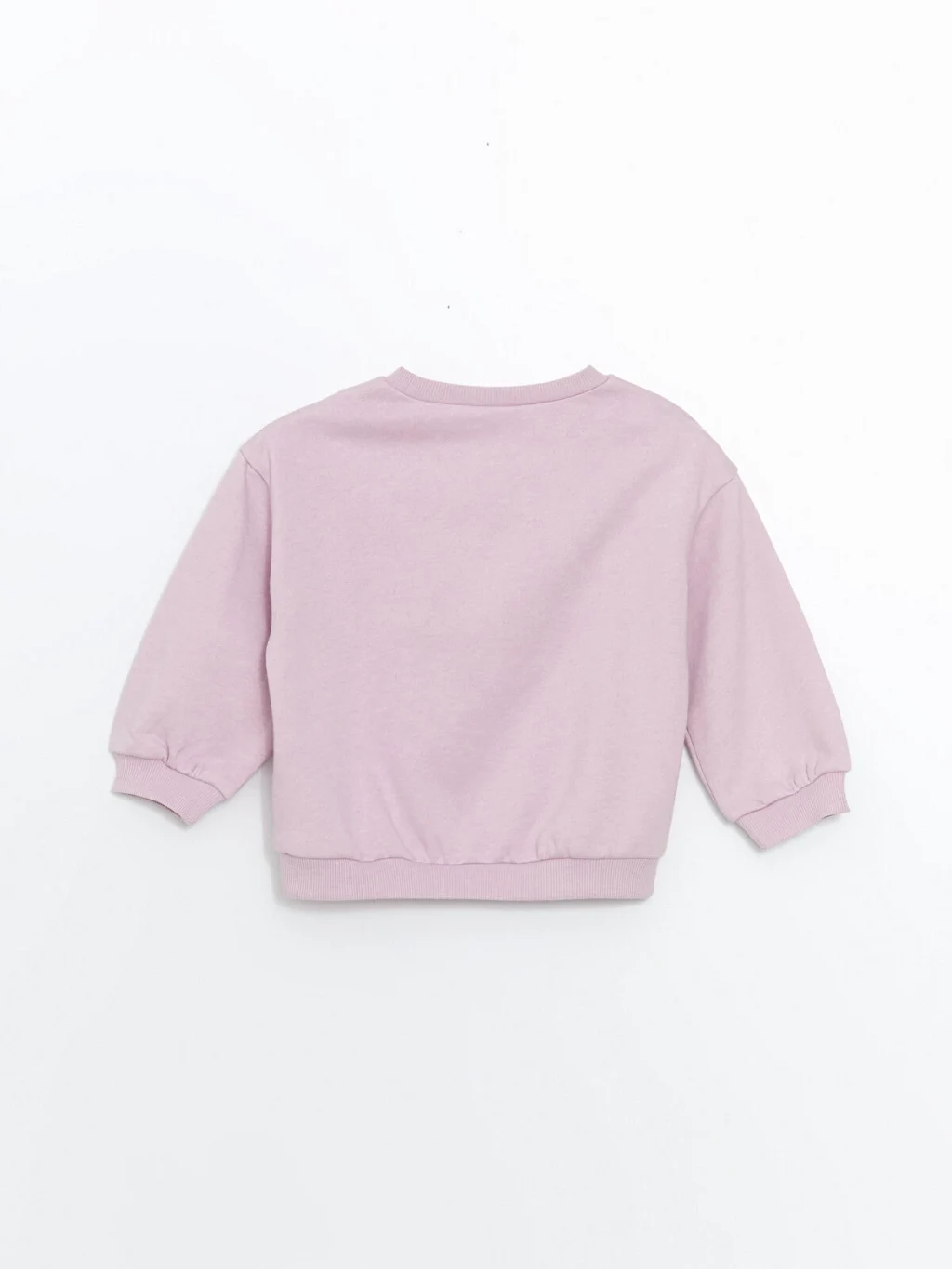 Bisiklet yaka baskılı kız bebek sweatshirt, 3 iplik şardonlu kumaşıyla yumuşak ve sıcak tutar. Soğuk günlerde konforlu bir kullanım sunar.