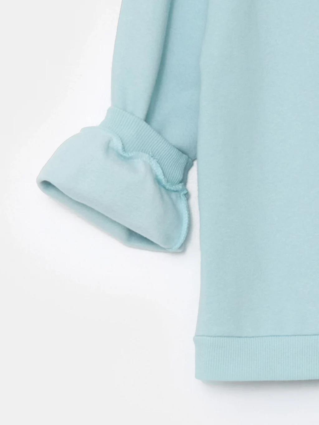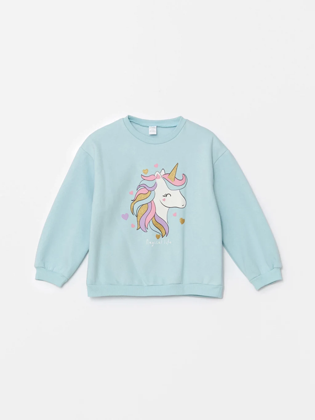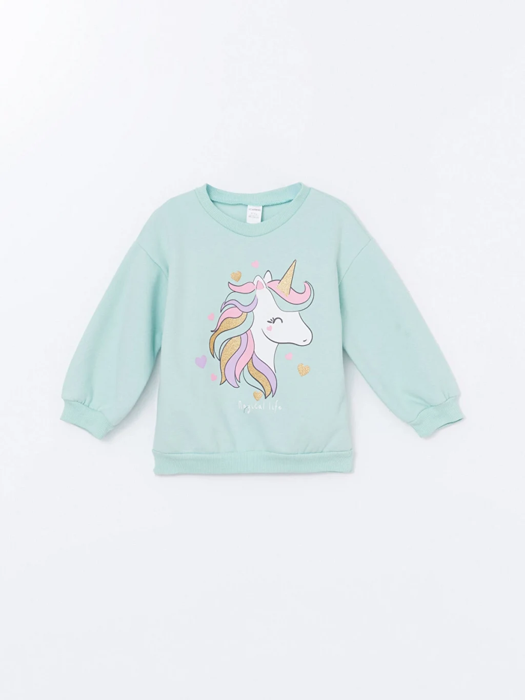 Bisiklet yaka baskılı kız bebek sweatshirt, 3 iplik şardonlu kumaşıyla yumuşak ve sıcak tutar. Soğuk günlerde konforlu bir kullanım sunar.