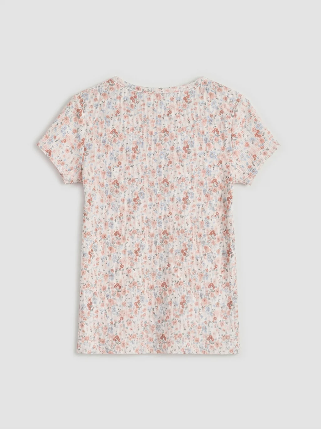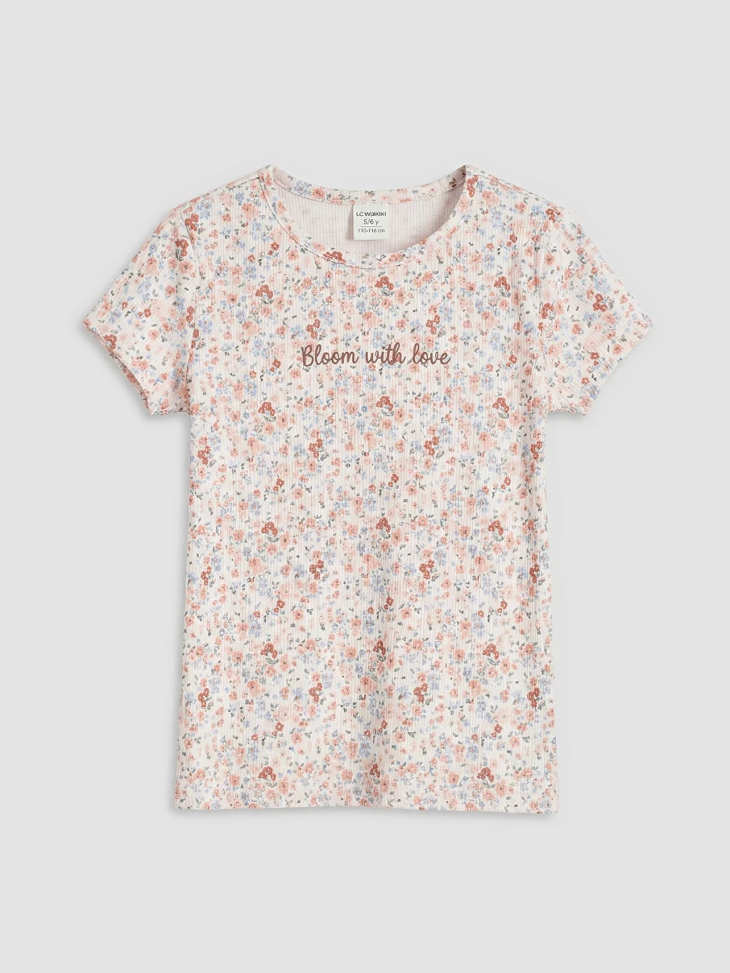 Bisiklet yakalı ve kısa kollu kız çocuk tişört, dar kalıplıdır. Kaşkorse kumaştan üretilen tişört, baskı detaylı ve çiçek desenlidir.