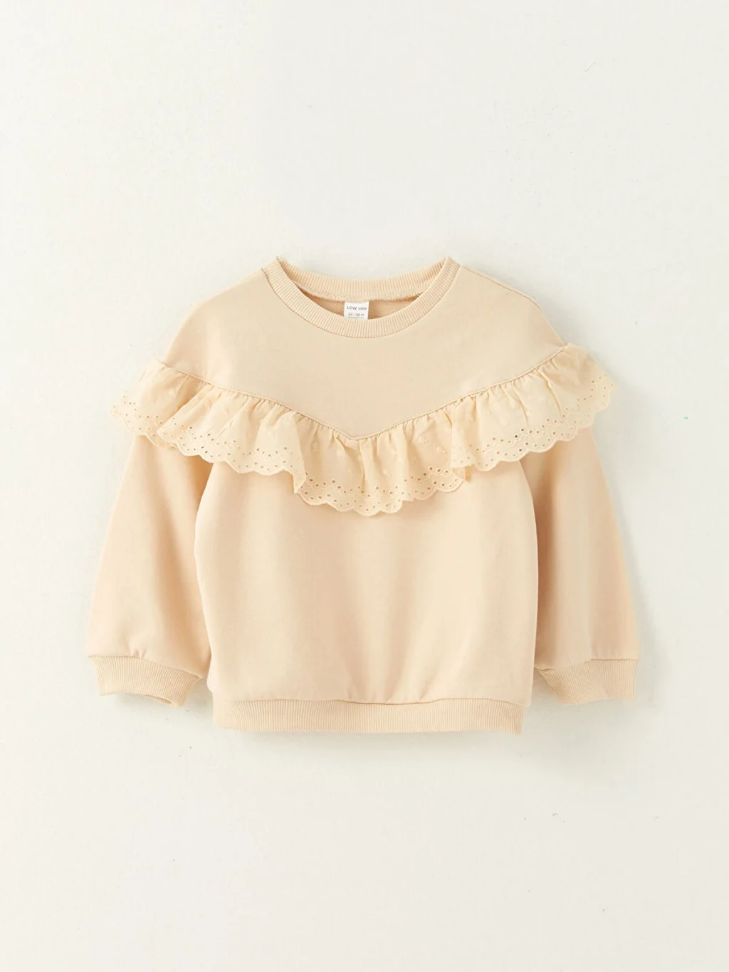 Defacto Kız Bebek Bebe Yaka İçi Yumuşak Tüylü Çizgili Sweatshirt D6676A524WN