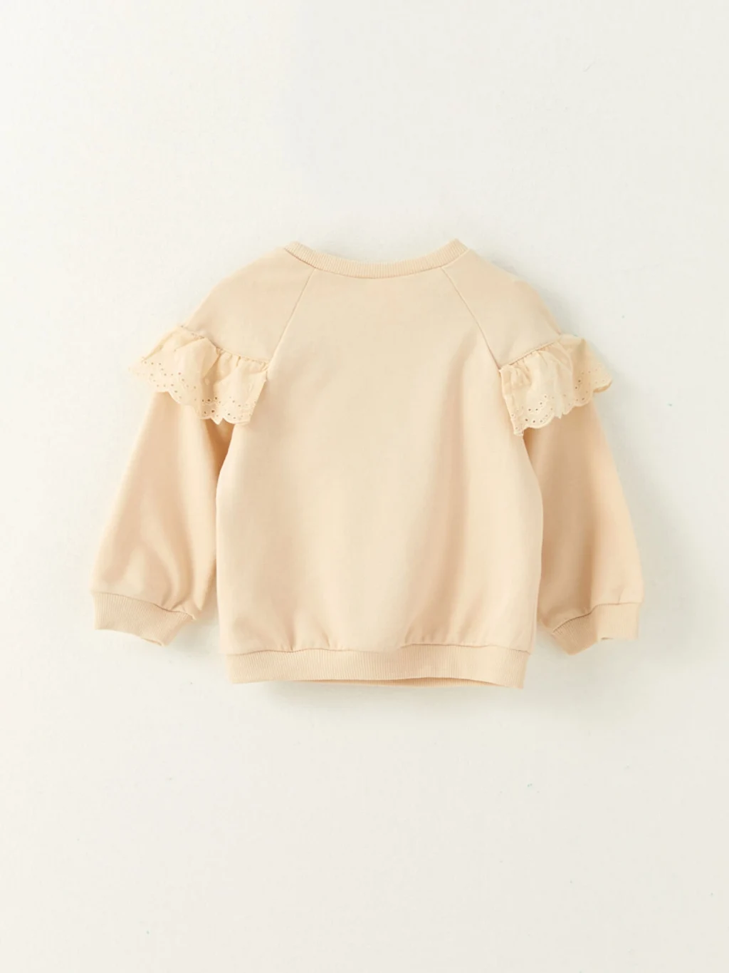 LCW Vision Bej Bisiklet Yaka Baskılı Kadın Kalın Sweatshirt
