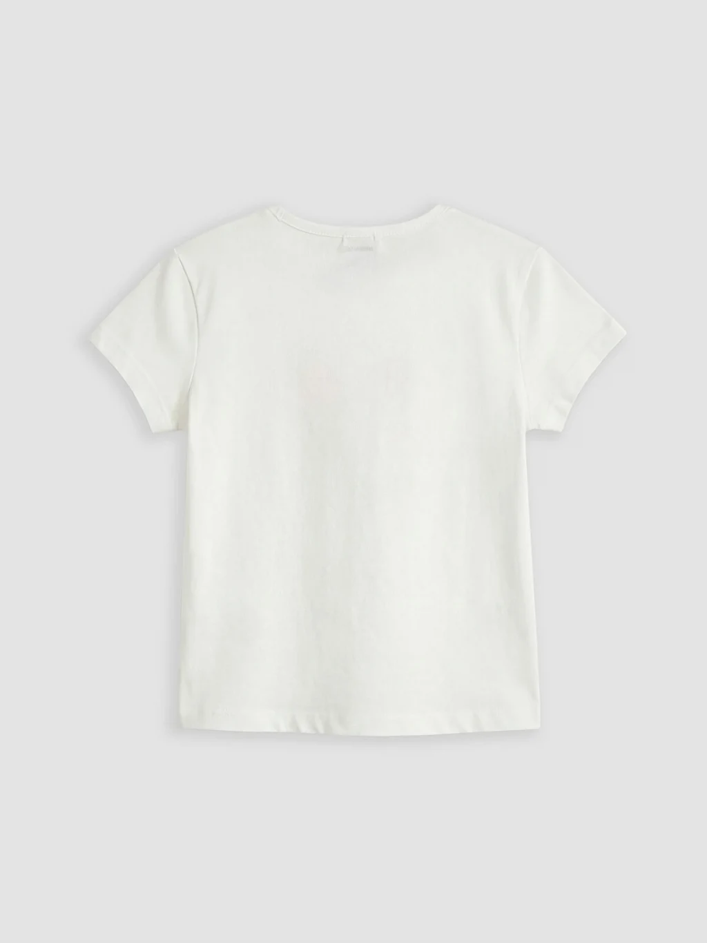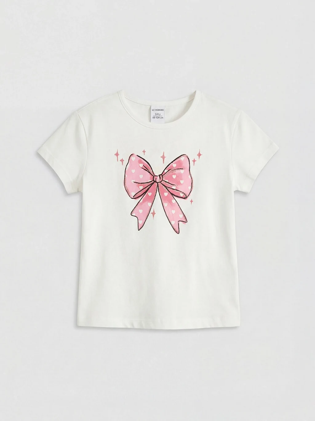 LCW Kids Beyaz Bisiklet Yaka Baskılı Kısa Kollu Kız Çocuk Tişört