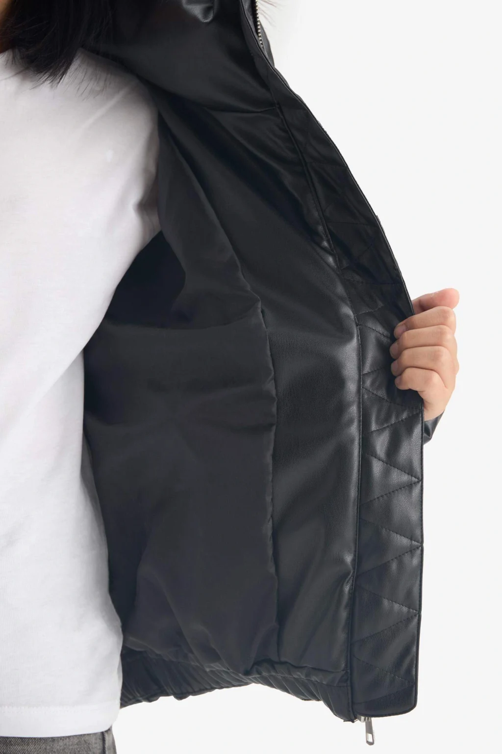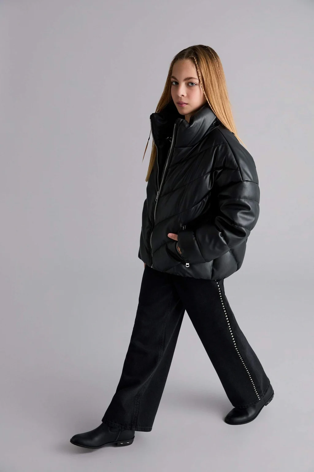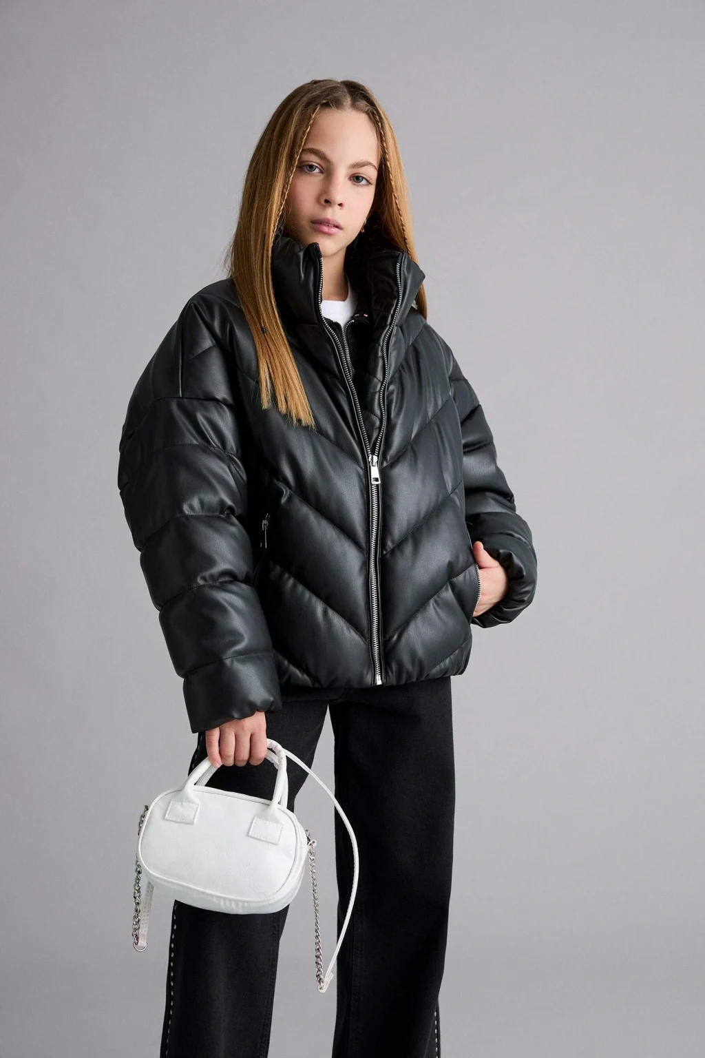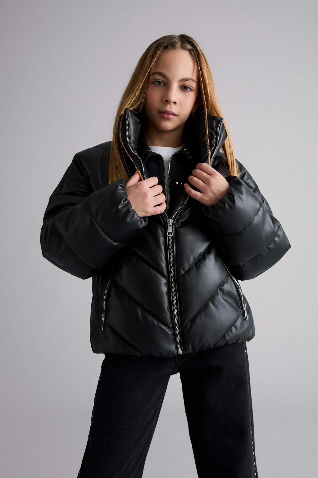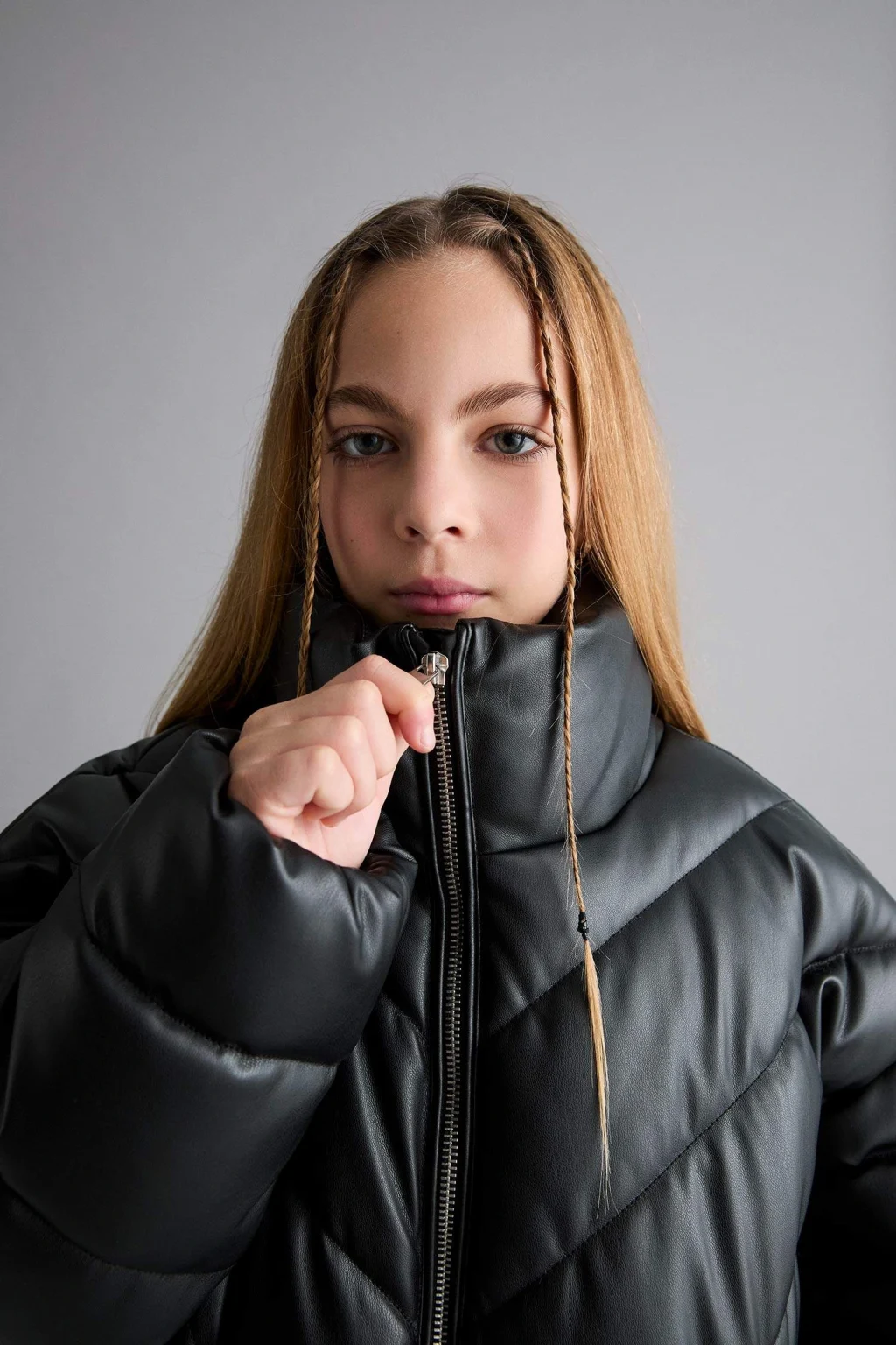 Dik yakası ve fermuarlı tasarımıyla bu şişme mont, kız çocuklarına rüzgar ve soğuğa karşı etkili koruma sunar. Hafif ve sıcak yapısıyla günlük kullanıma uygundur.