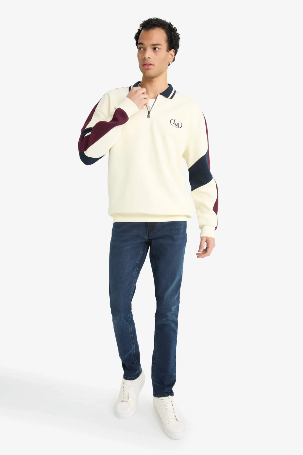 Boxy fit kesimi ve dik yaka tasarımıyla rahatlık sunan bu fermuarlı sweatshirt, şık baskısıyla stilinize enerji katıyor. Günlük kullanıma uygun, modern ve dinamik bir parça.