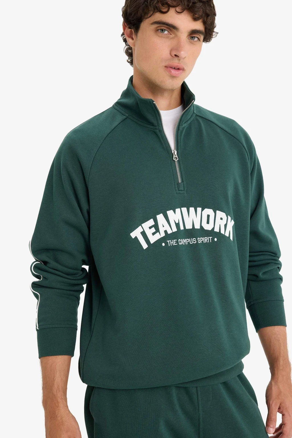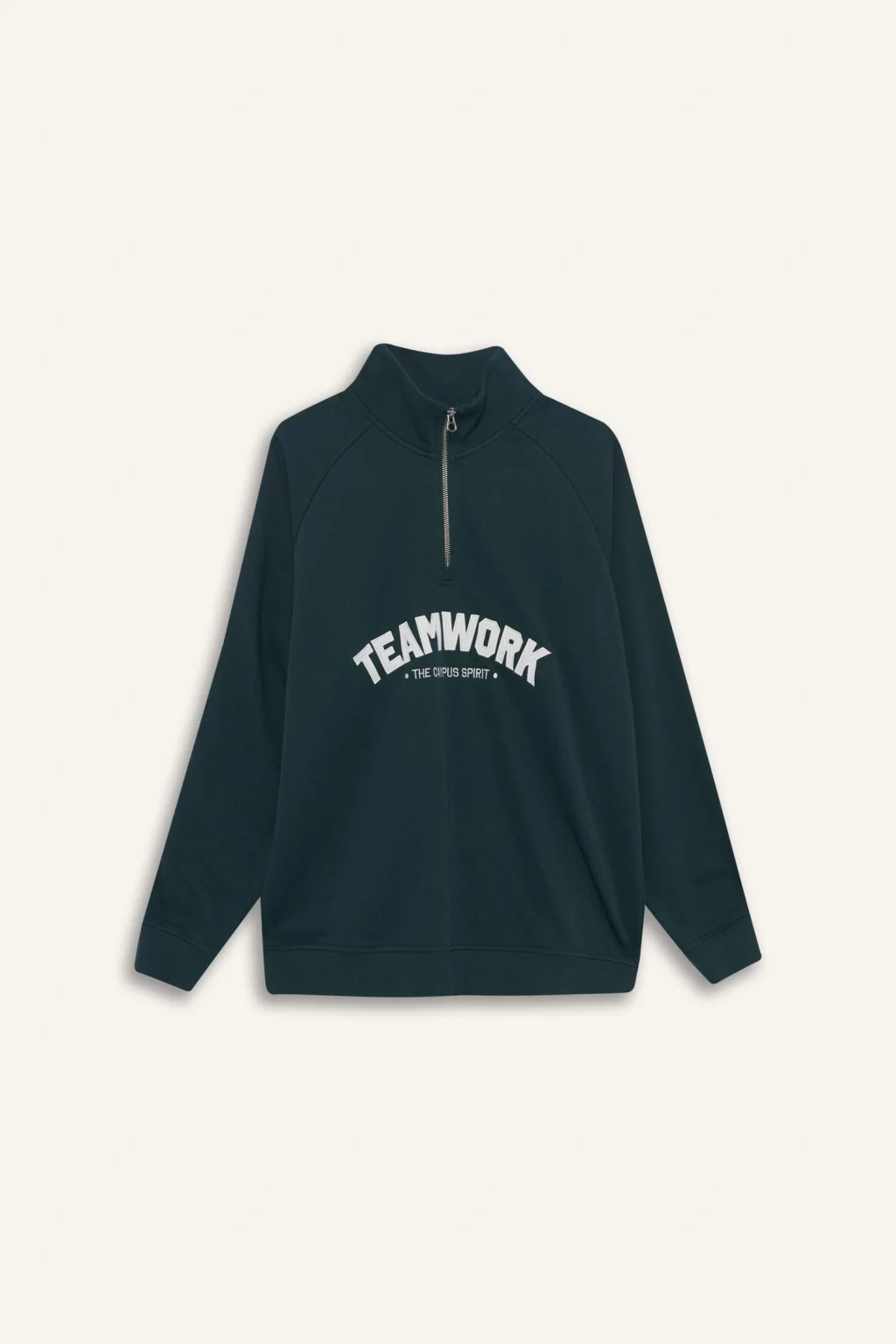 Boxy fit kesimi ve dikkat çekici baskısıyla öne çıkan bu sweatshirt, casual şıklığı bir adım öteye taşıyor. Dik yaka ve fermuarlı tasarımıyla hem tarz hem de konfor sunar.