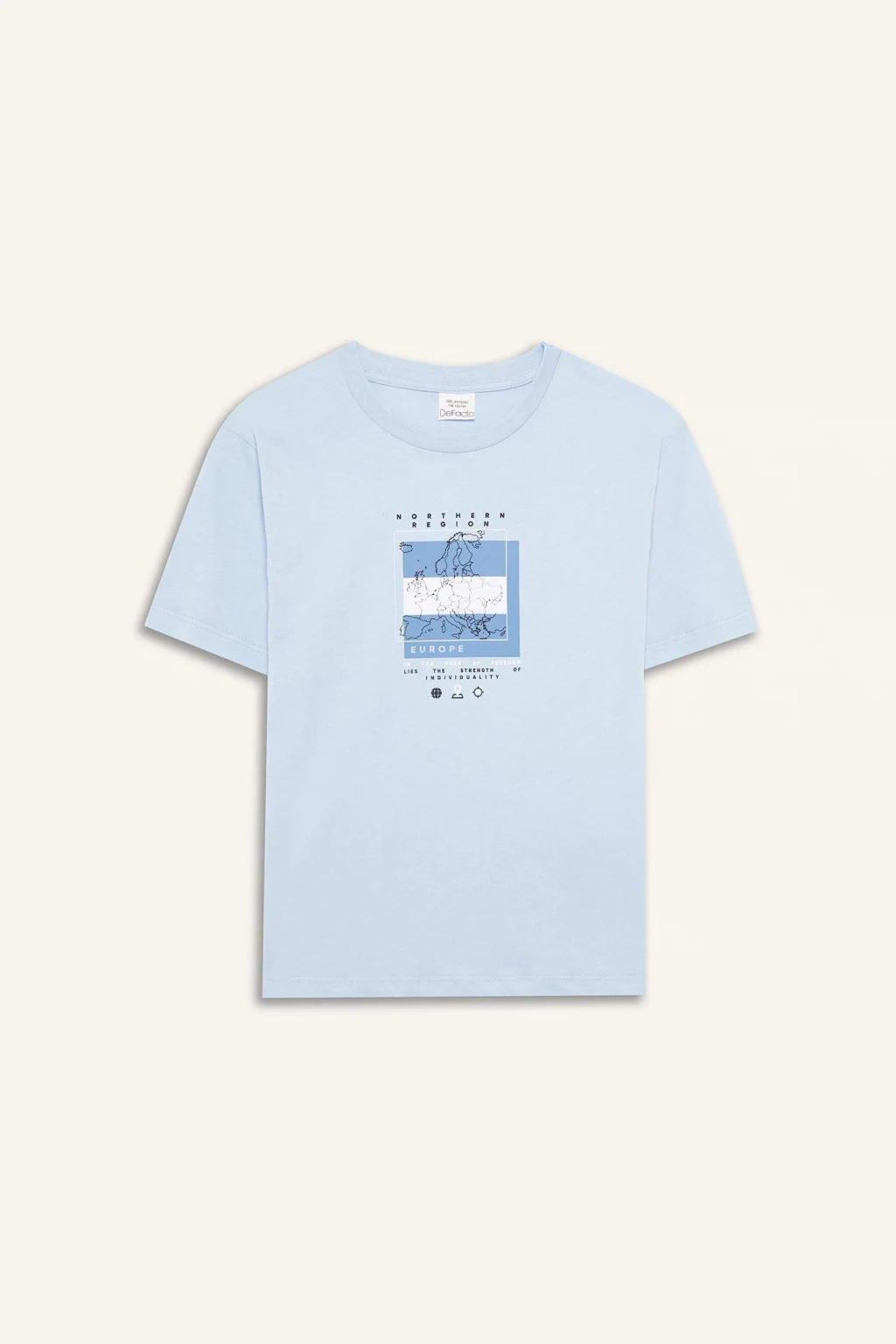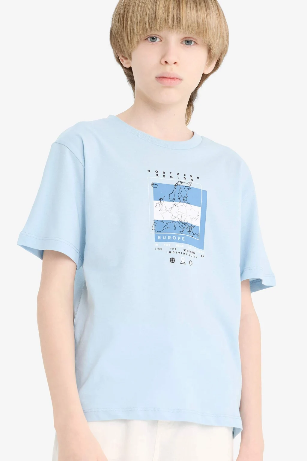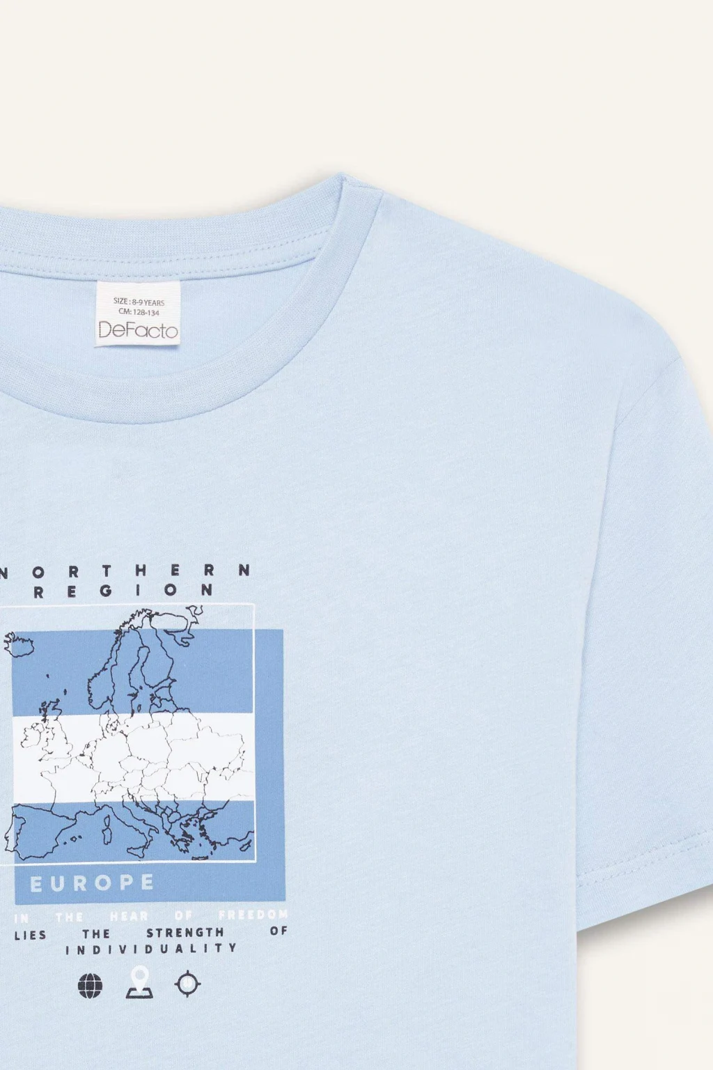 Defacto F0172 Mavi Erkek Çocuk Bisiklet Yaka Baskılı Kısa Kollu Tişört