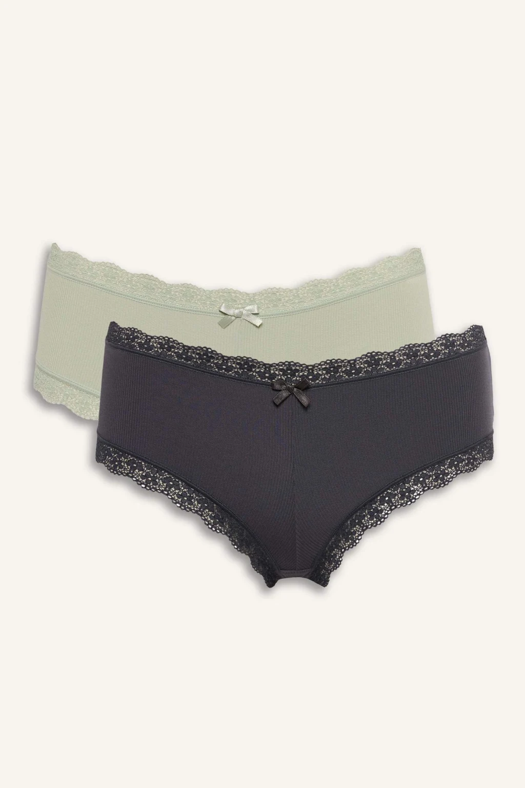 Defacto F0236AXGN1169 Yeşil Dantel Detaylı Micro 2'li Hipster Külot