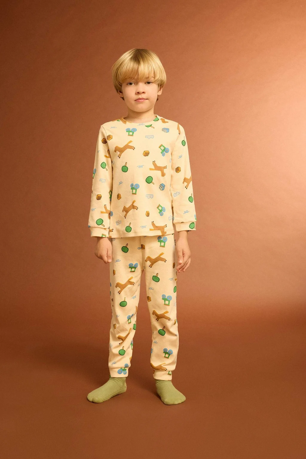 Sevimli desenleriyle dikkat çeken bu erkek bebek pijama takımı, uzun kollu üst ve uzun alt parçasıyla miniklere gece boyu konfor sunar. Yumuşak kumaşı sayesinde hassas ciltlere uyum sağlar ve rahat bir uyku deneyimi sunar.