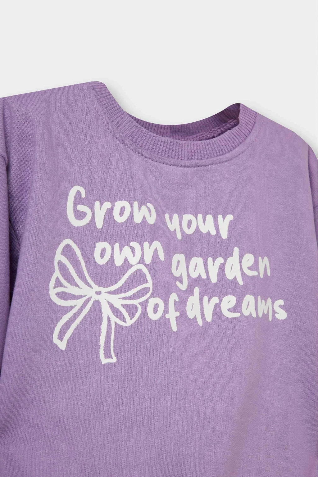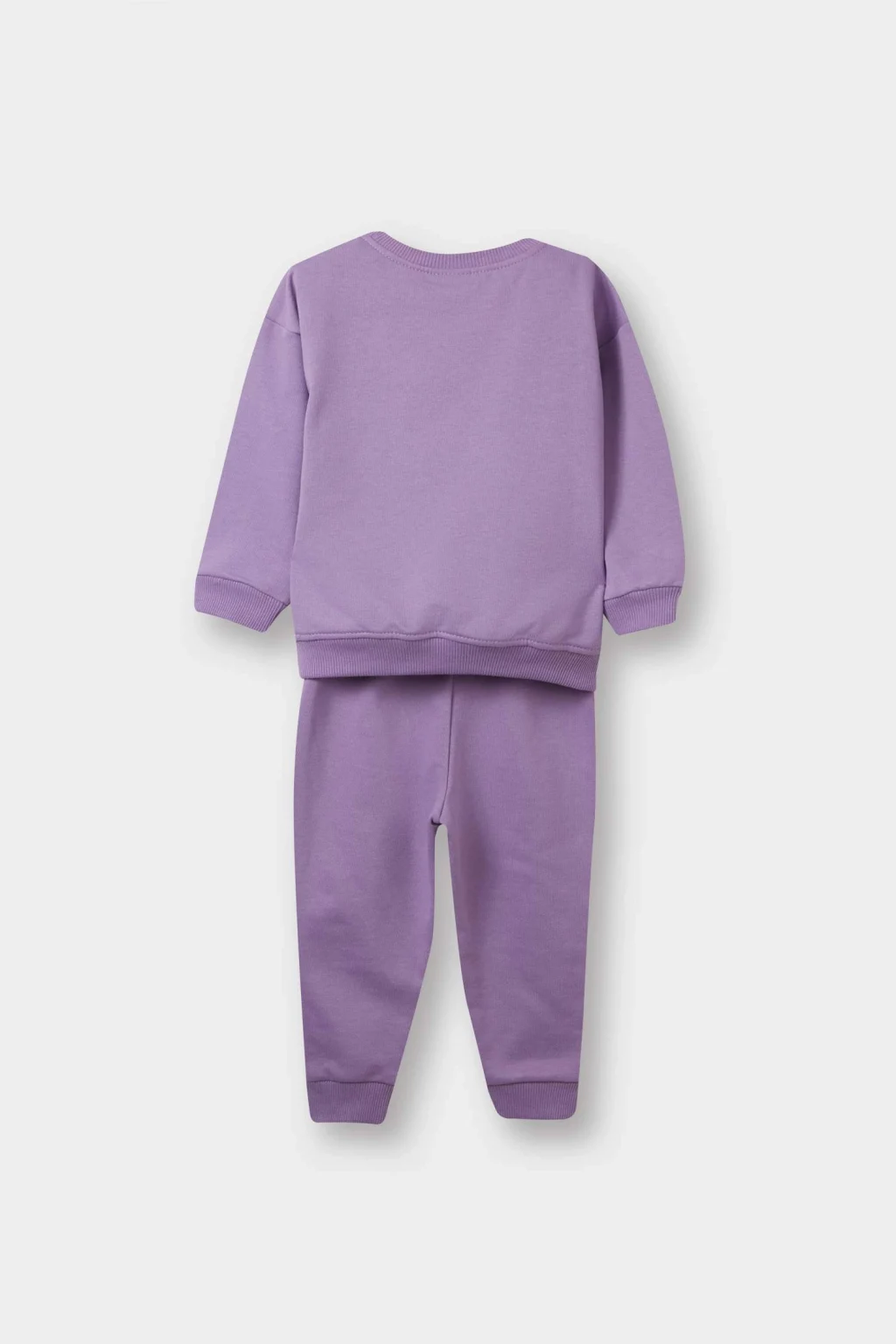 İçi yumuşak tüylü baskılı sweatshirt ve eşofman altından oluşan bu 2’li takım, kız bebeklerin hassas cildi için konforlu bir dokunuş sunar. Günlük kullanımda sıcaklık ve rahatlığı bir arada sağlar.