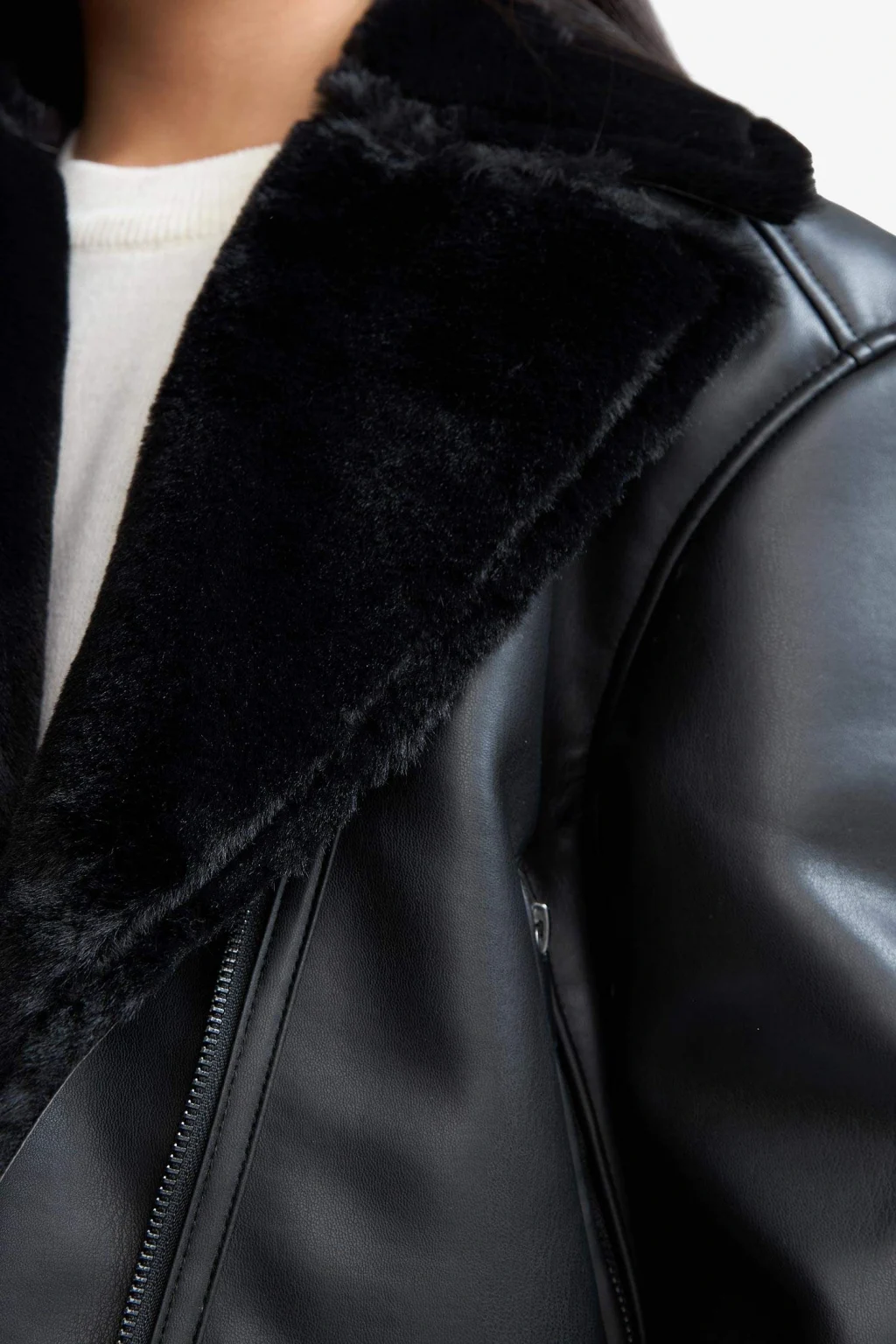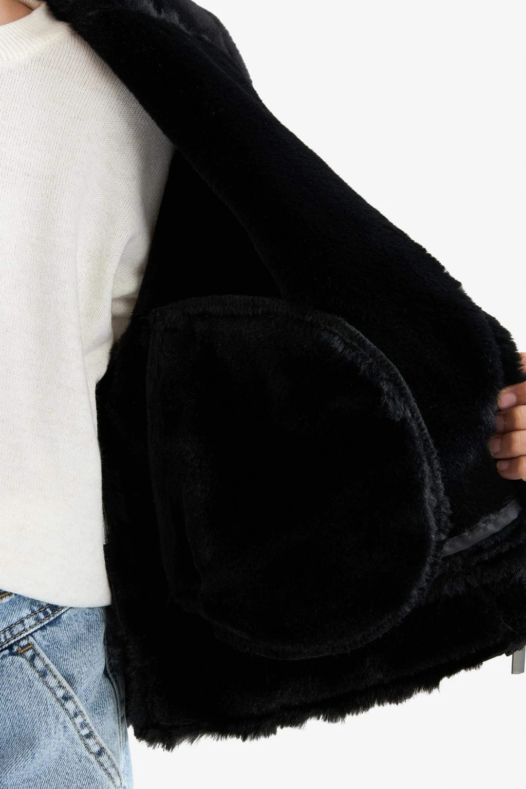 Ceket yaka ve suni kürk astarıyla bu mont, kız çocuklarına hem şık hem de sıcak tutan bir dış giyim seçeneği sunar. Soğuk havalarda konforlu ve koruyucu bir kullanım sağlar.