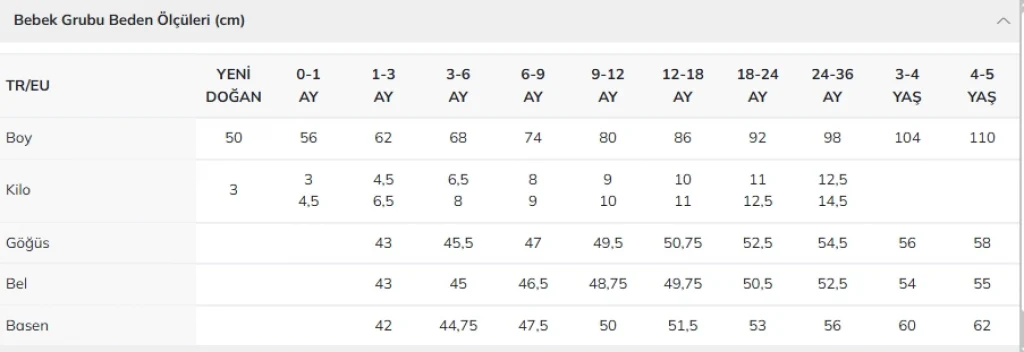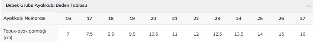 Ürün Uzunluk Ölçüleri : İç Boy: 9-12 Ay (80cm)-24 cm, İç Boy: 12-18 Ay (86cm)-27 cm, İç Boy: 18-24 Ay (92cm)-31 cm, İç Boy: 2/3 Yaş (98cm)-35 cm, İç Boy: 3/4 Yaş (104 Cm)-39 cm, İç Boy: 4/5 Yaş (110cm)-43 cm, İç Boy: 5/6 Yaş (116cm)-45 cm