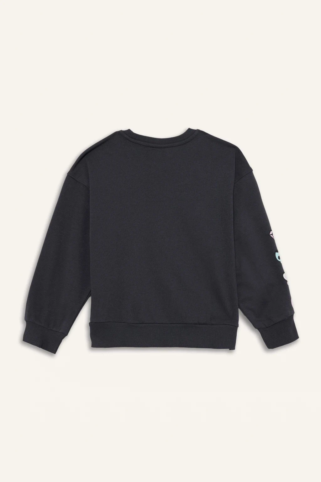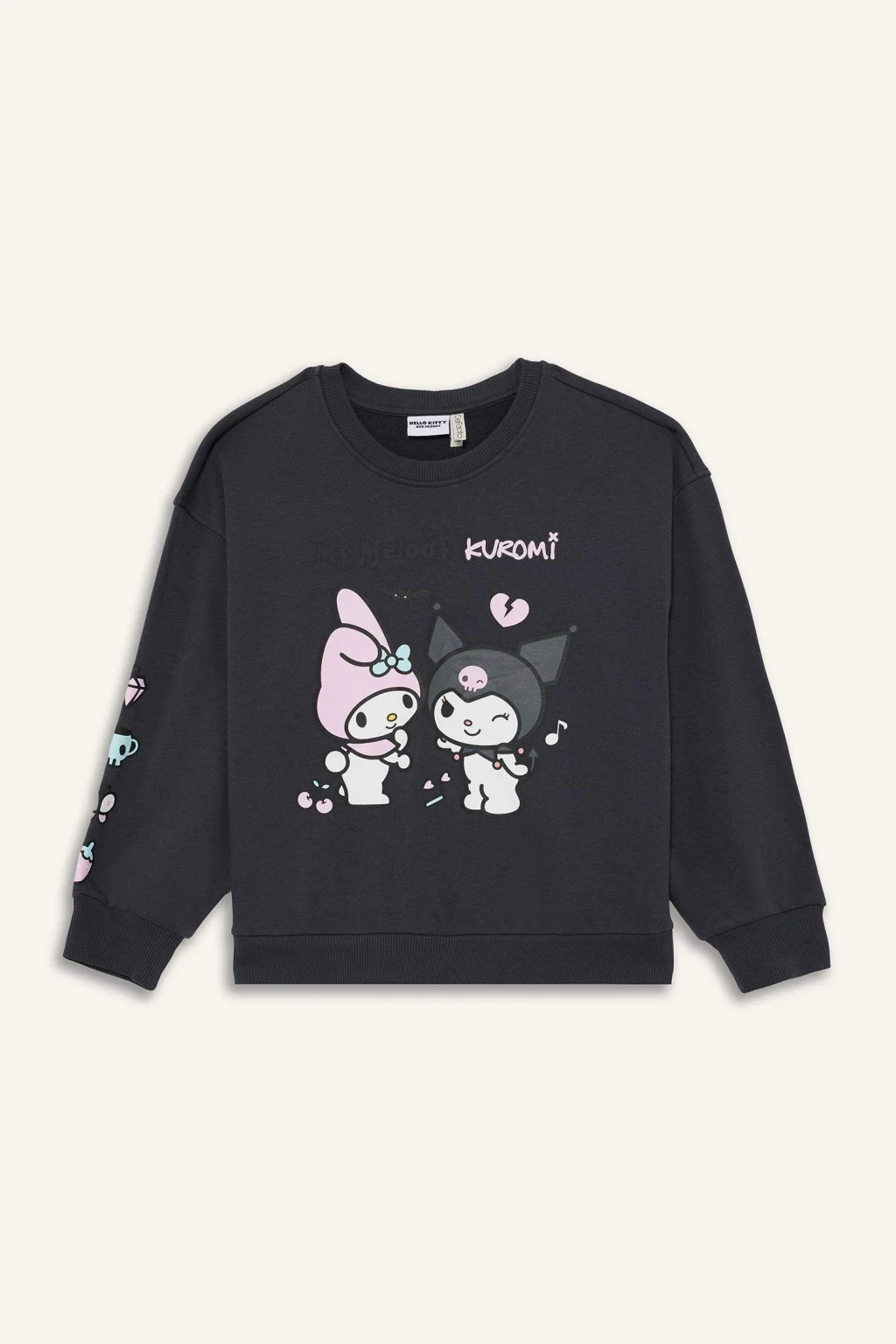 Sevimli Kuromi baskısıyla dikkat çeken bu oversize geniş kalıp sweatshirt, bisiklet yaka tasarımıyla rahatlık ve şıklığı bir arada sunar. Yumuşak kumaşıyla kız çocuklarının favorisi olacak konforlu bir parça.