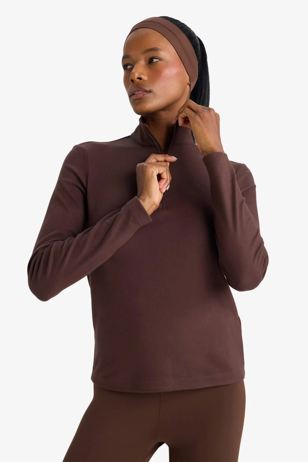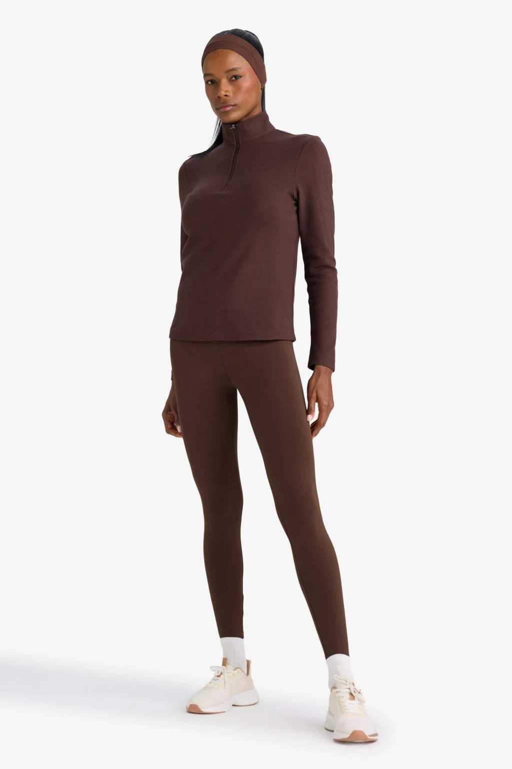 Defacto G3716AXBN338 Kahve Oversize Geniş Kalıp Yarım Fermuarlı Baskılı Sweatshirt