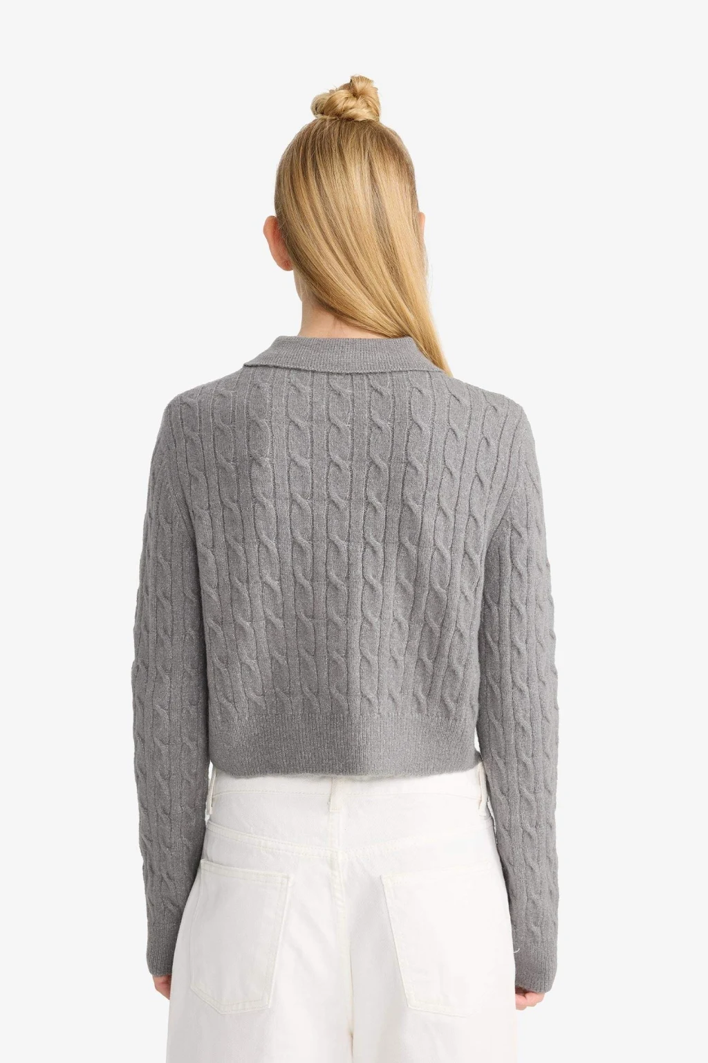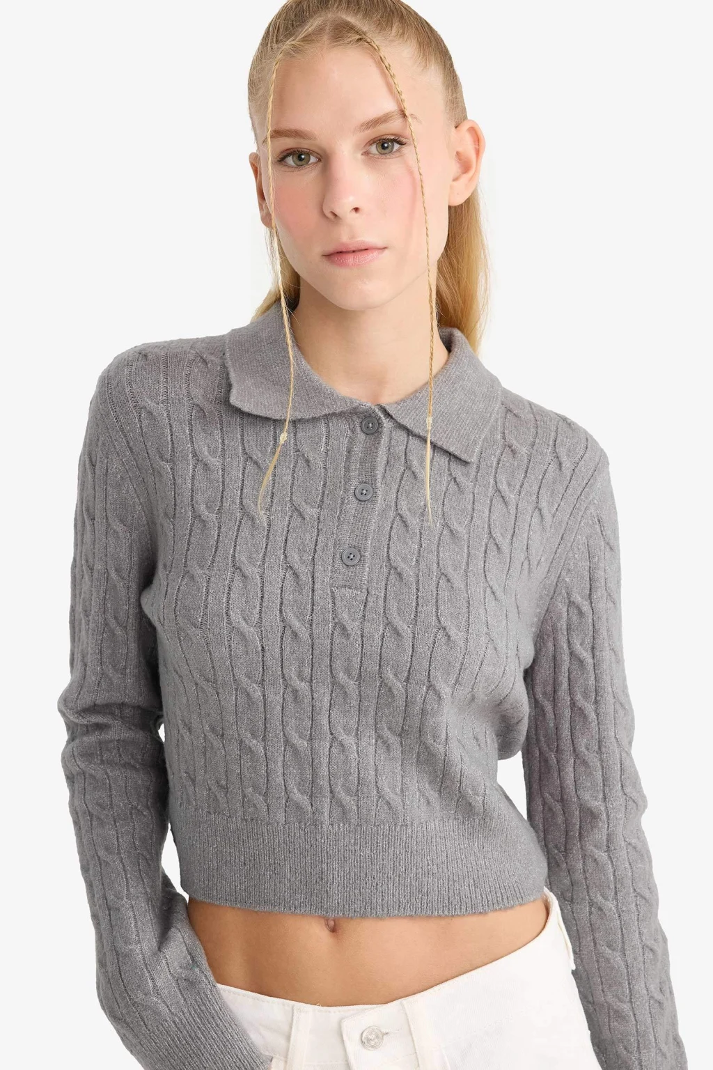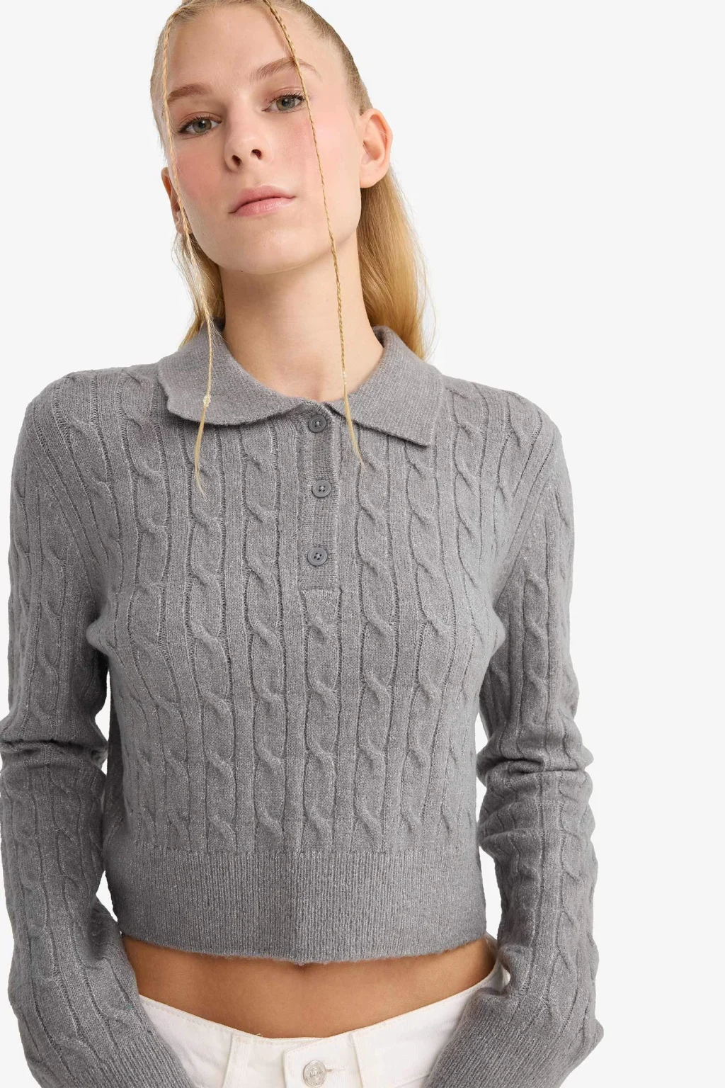 Defacto F1745AXGR130 Gri Slim Fit Dar Kesim Polo Yaka Kazak
