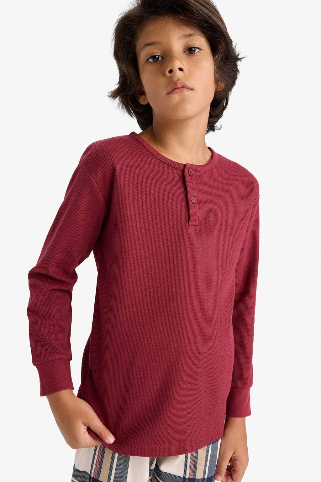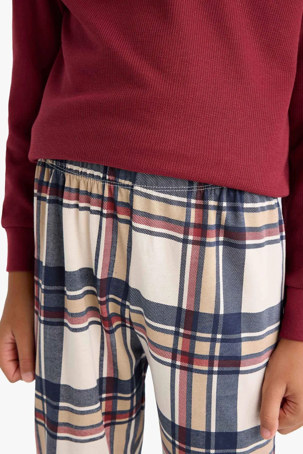 Erkek çocuklar için tasarlanan bu pijama takımı, yumuşak waffle dokulu uzun kollu üst ve şık kareli uzun altıyla hem rahatlık hem şıklık sunar. Nefes alabilen kumaşı sayesinde gece boyu konfor sağlar. Günlük kullanım ve uyku zamanı için ideal bir tercihtir.
