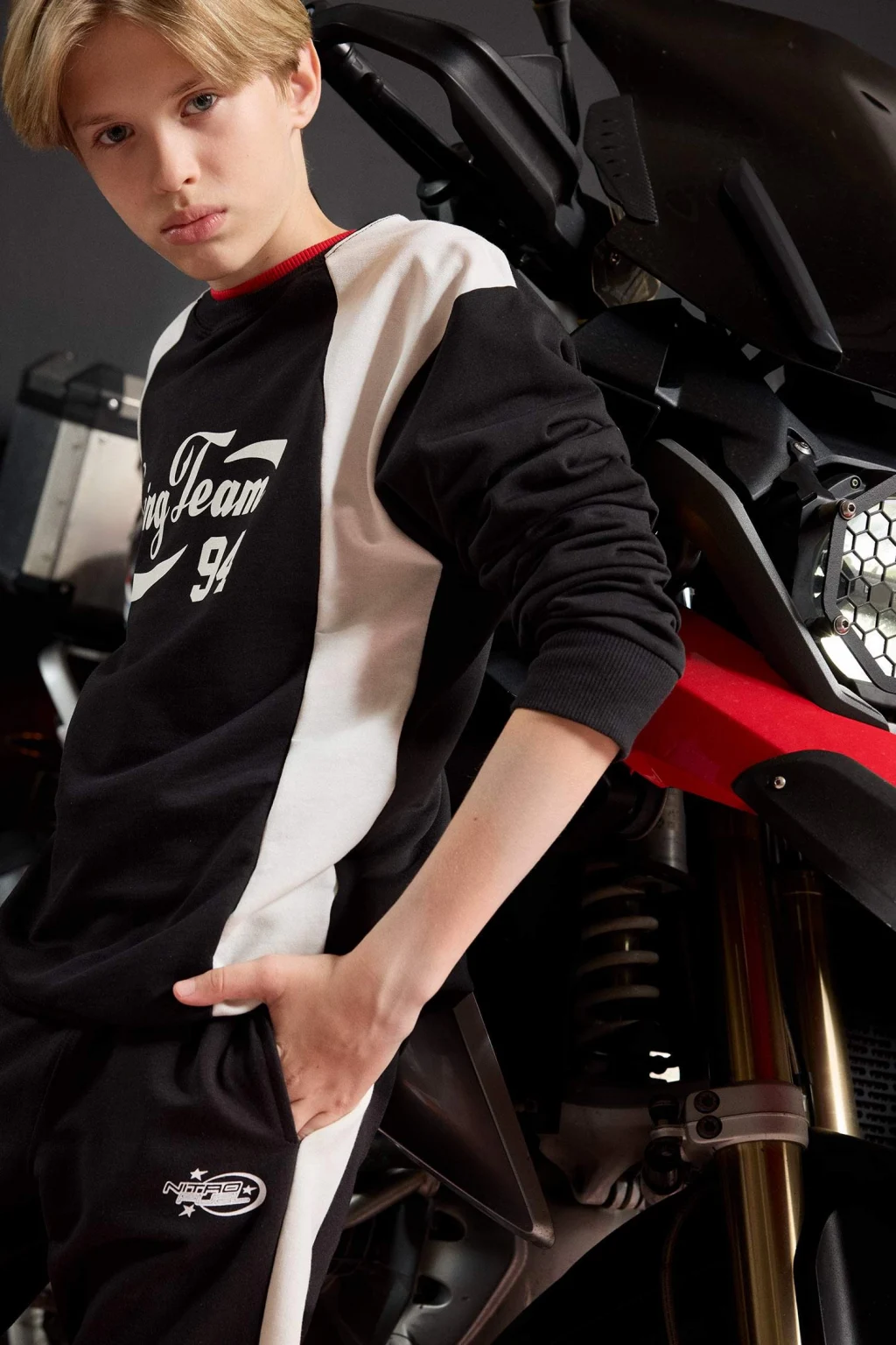 Erkek çocuklar için bisiklet yaka baskılı sweatshirt, rahat kesimi ve canlı desenleriyle günlük kullanıma uygundur. Yumuşak kumaşı sayesinde konforlu bir giyim deneyimi sunar.