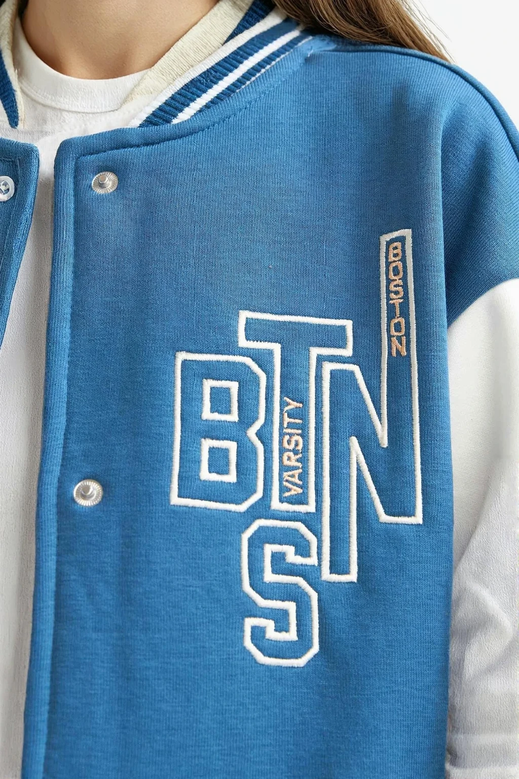 Bu oversize kesimli, mavi slogan baskılı hırka, kız çocuklar için sonbahar/kış mevsimine uygun kalın sweatshirt kumaştan üretilmiştir. Cep detayları ve koleji yaka bomber yakasıyla şık ve rahat bir seçenektir. Uzun kollu tasarımıyla sıcak tutarken tarzınızı da yansıtmanıza olanak sağlar.